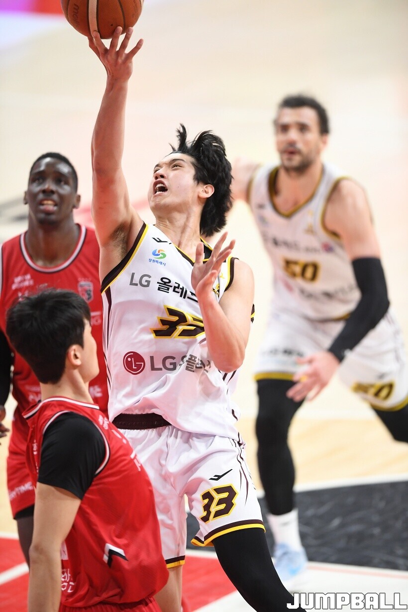 [점프볼=안양/유용우 기자] 31일 안양 정관장 아레나에서 열린 2025-2026 LG전자 프로농구 안양 정관장과 창원 LG의 경기, LG 칼 타마요가 돌파하며 공격을 시도하고 있다.