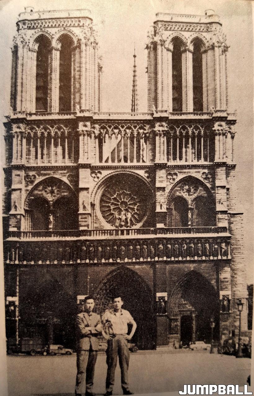 | ▲국제군인농구선수권대회를 마친 뒤 파리의 노트르담 대성당을 방문한 김영기(왼쪽). |