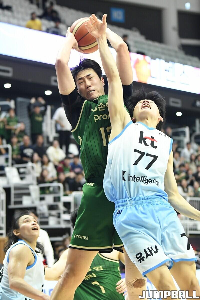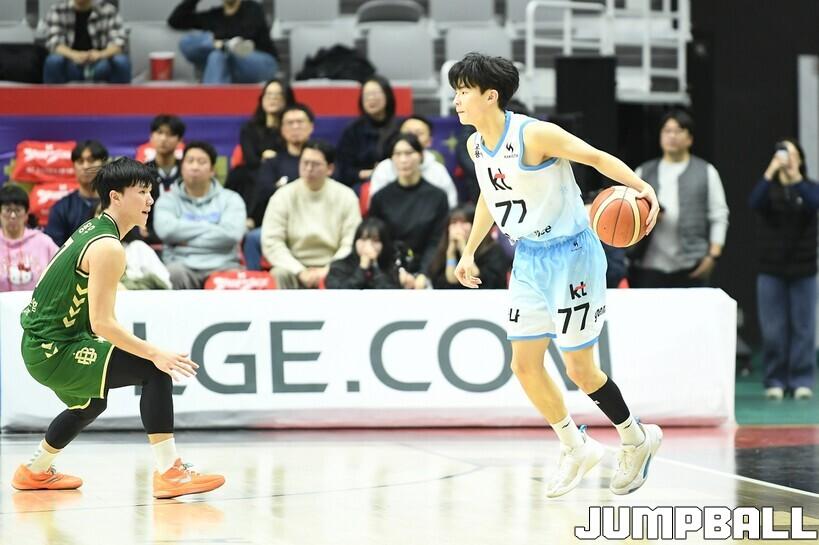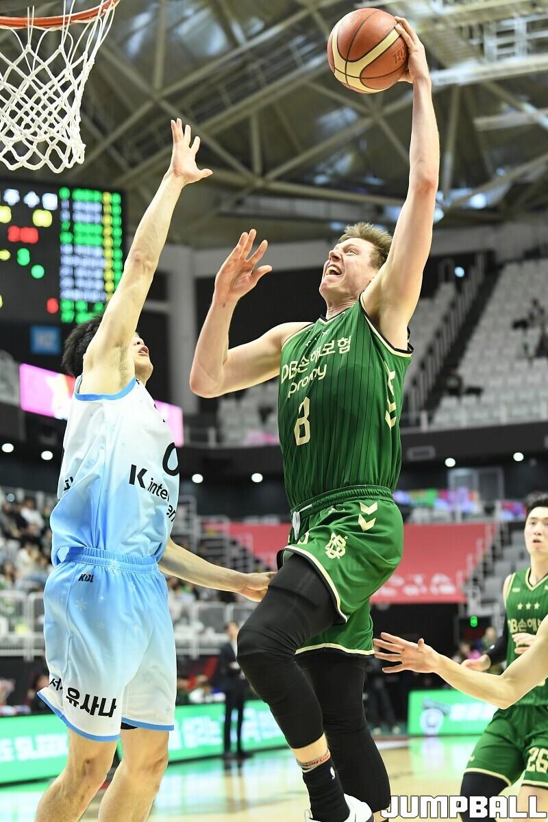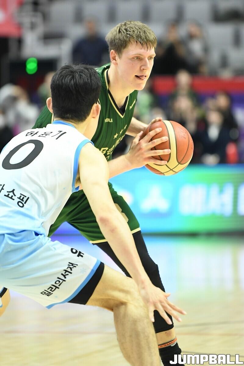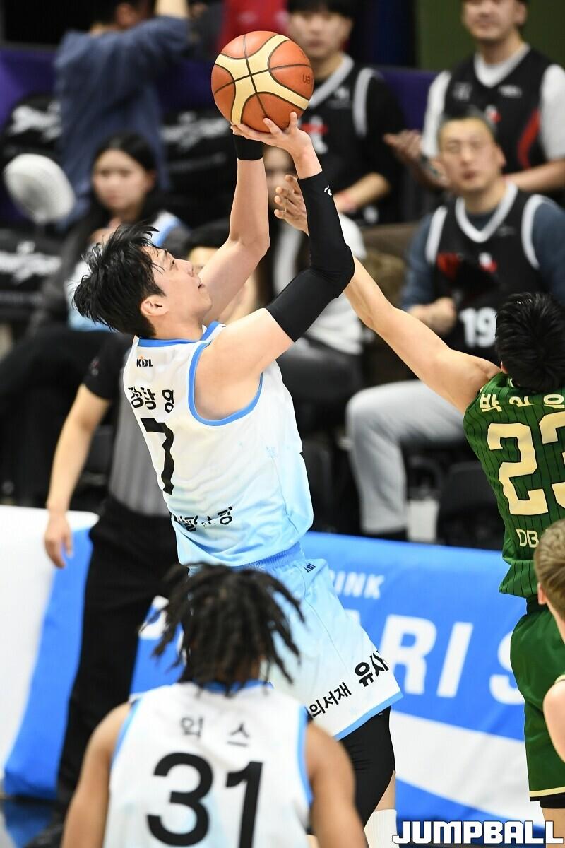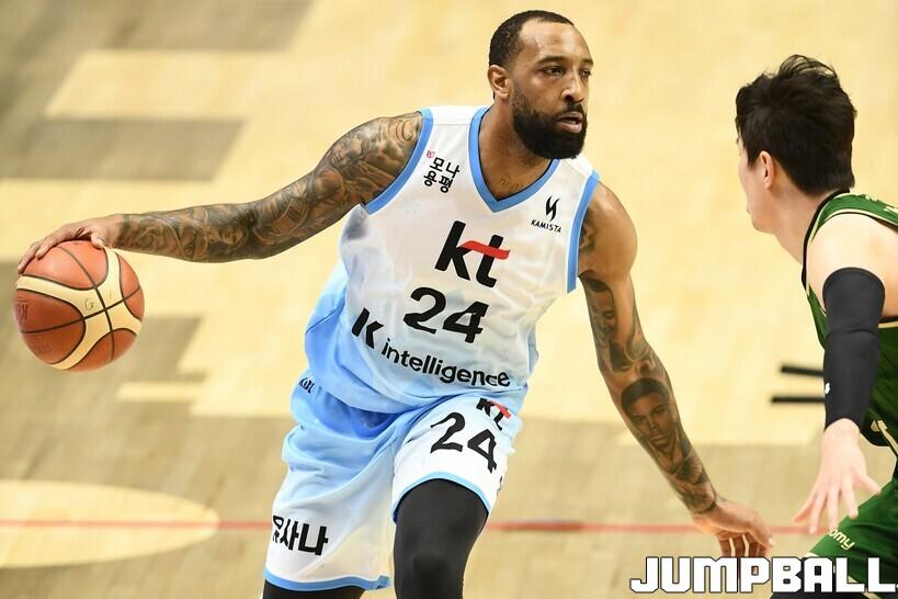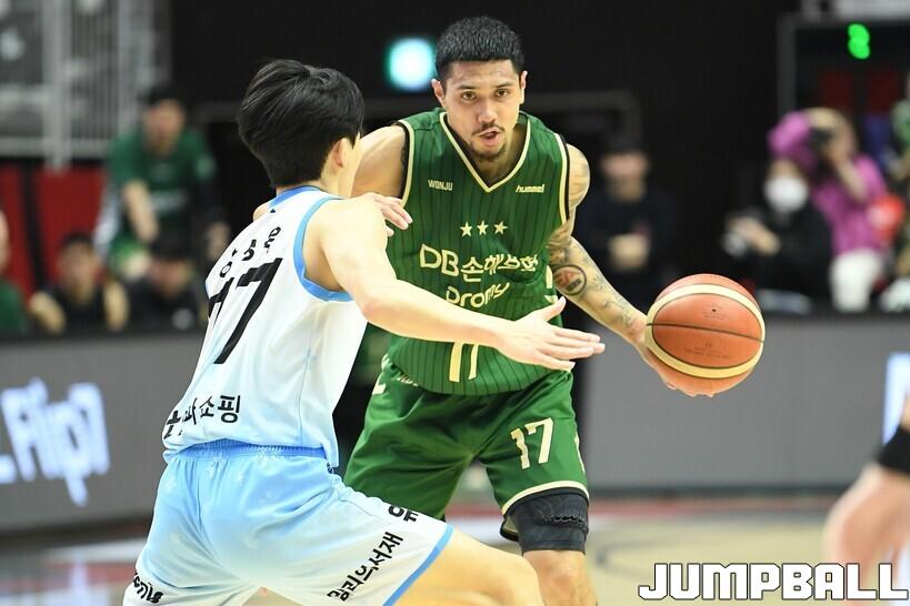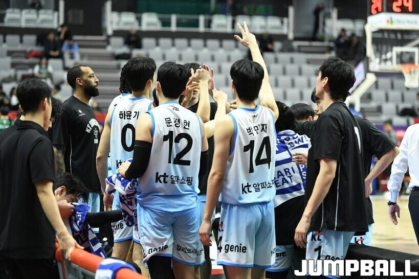 [점프볼=수원/유용우 기자] 19일 수원 KT 소닉붐 아레나에서 열린 2025-2026 LG전자 프로농구 수원 KT와 원주 DB의 경기, DB가 헨리 엘런슨의 38점 12리바운드 더블더블 맹활약에 힘입어 KT에 83-81 역전승을 거뒀다.