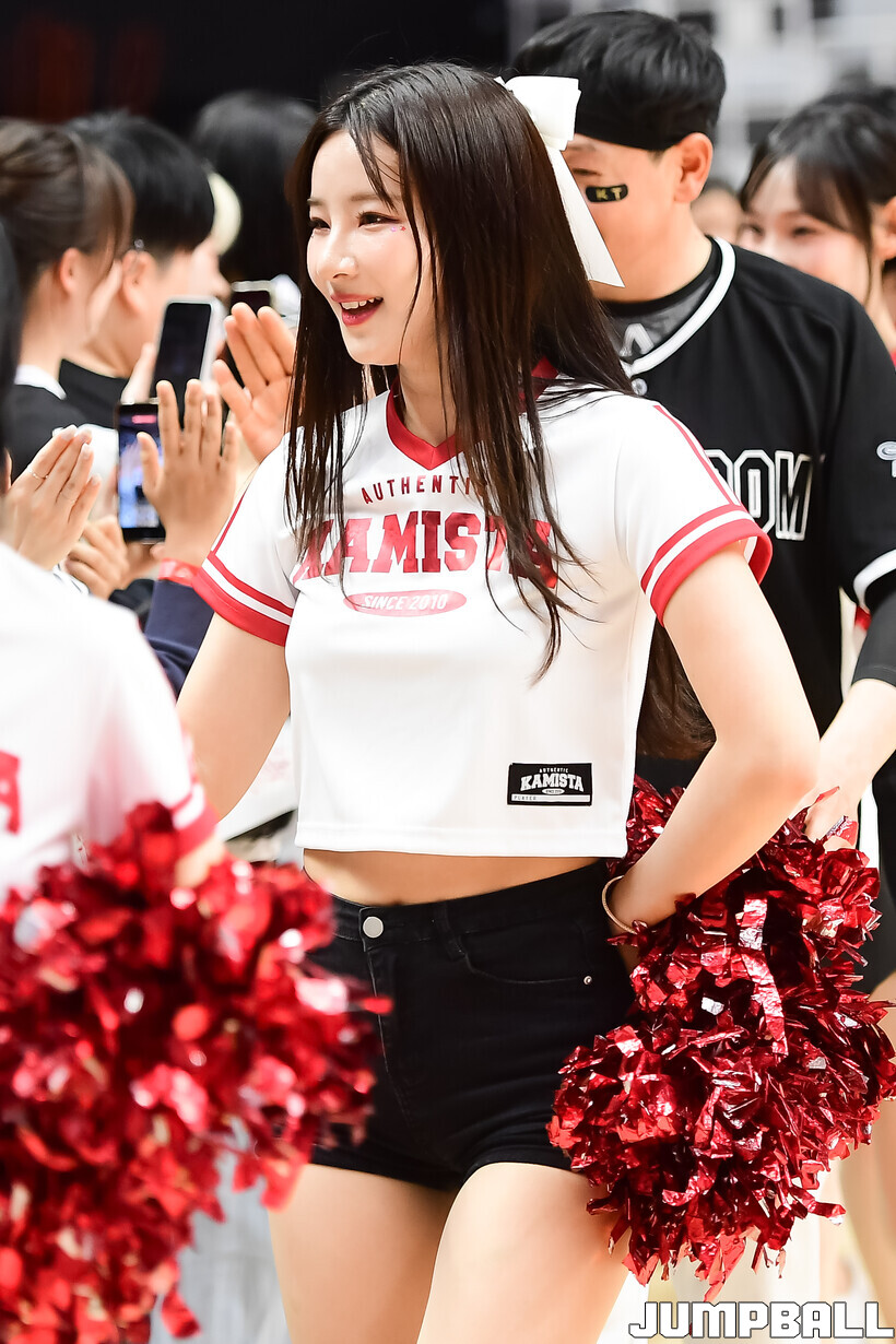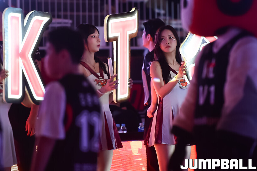 [점프볼=수원/박상혁 기자] 5일 수원 KT 소닉붐 아레나에서 열린 2025-2026 LG전자 프로농구 수원 KT와 울산 현대모비스의 경기, KT 치어리더가 홈 승리를 위해 열띤 응원을 선보였다.