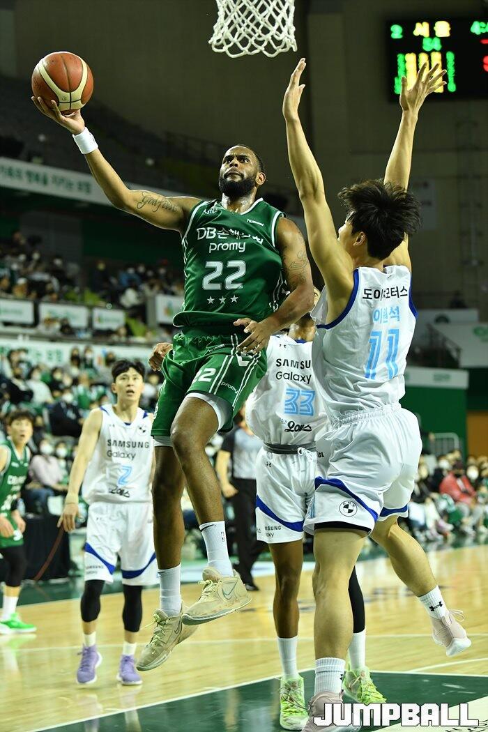 27일 원주종합체육관에서 열린 2022-2023 SKT 에이닷 프로농구 원주 DB와 서울 삼성의 경기, DB 드완 에르난데스가 슛을 시도하고 있다. [점프볼=원주/유용우 기자]