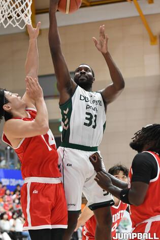 [점프볼=제천/박상혁 기자] 6일 제천체육관에서 열린 2024 DB손해보험 KBL 컵대회 in 제천 서울 SK와 원주 DB의 경기, DB 서민수가 레이업슛을 시도하고 있다.