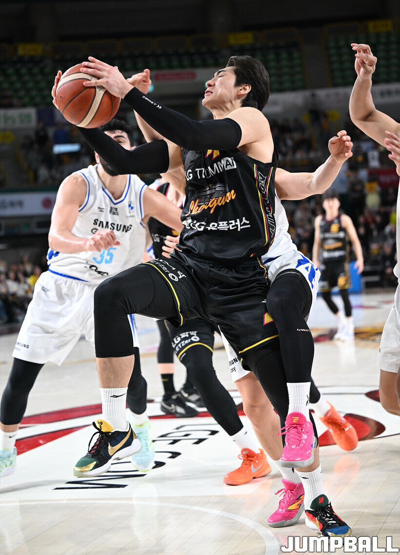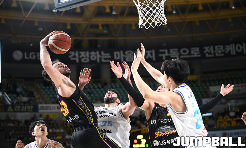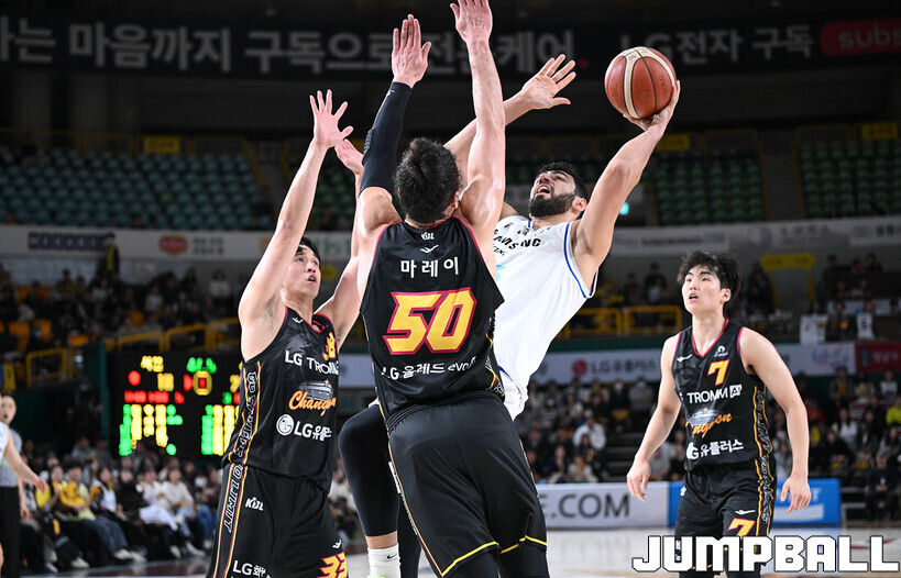 [점프볼=창원/문복주 기자] 창원 LG는 13일 창원체육관에서 벌어진 2025-2026 LG전자 프로농구 홈경기에서 서울 삼성을 맞아 97–88의 승리를 거두고 2연패에서 벗어났다.