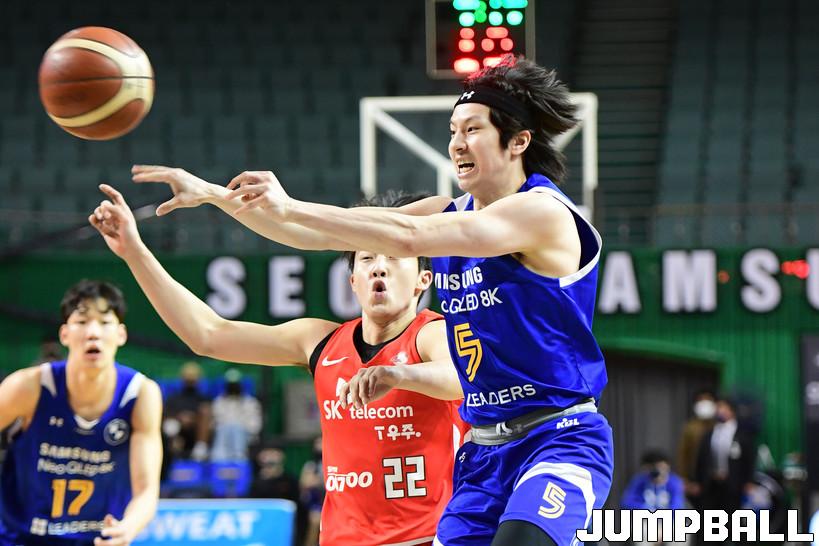 4일 잠실실내체육관에서 열린 2021-2022 KGC인삼공사 정관장 프로농구 서울 삼성과 서울 SK의 S-더비 6차전 경기, 삼성 김시래가 패스를 시도하고 있다.