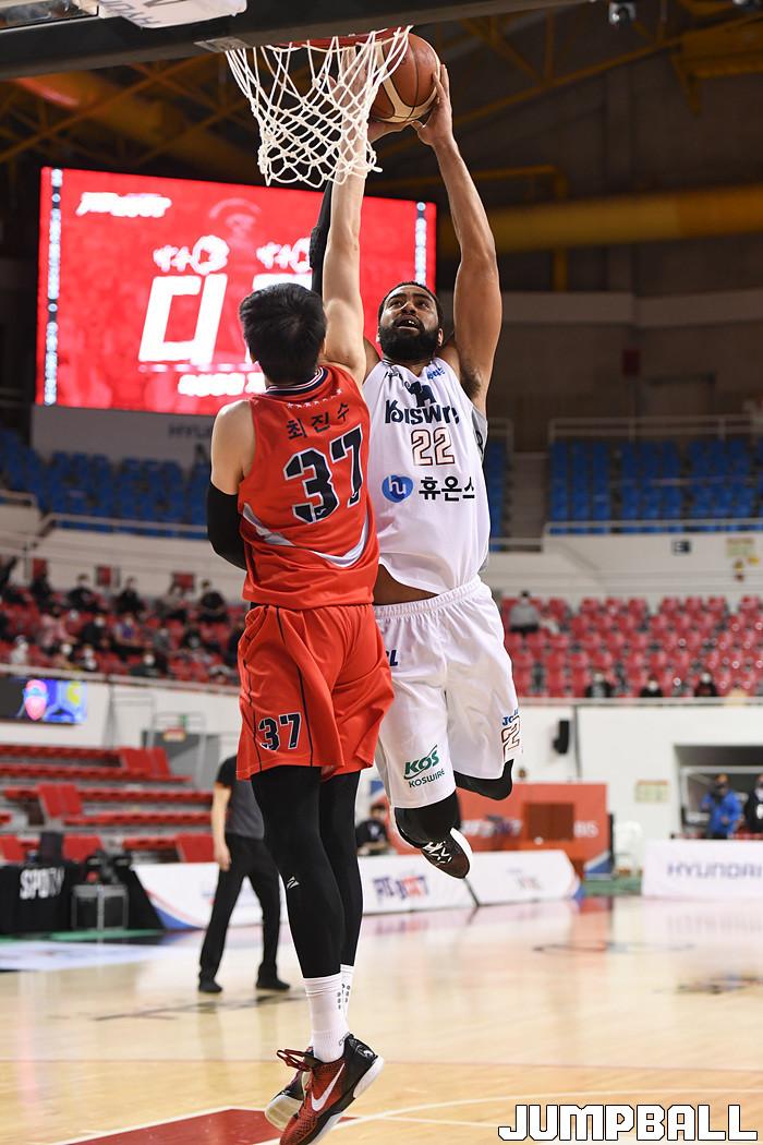 [점프볼=울산/박상혁 기자] 5일 울산동천체육관에서 열린 2020-2021 현대모비스 프로농구 울산 현대모비스와 인천 전자랜드의 경기, 전자랜드 데본 스캇이 덩크슛을 시도하고 있다.