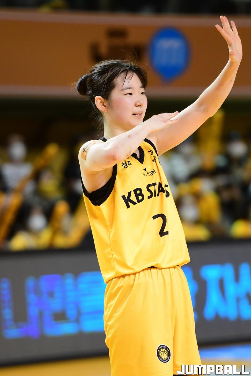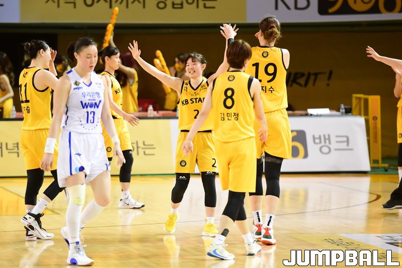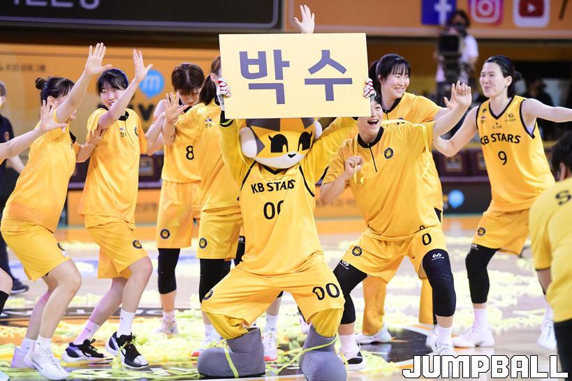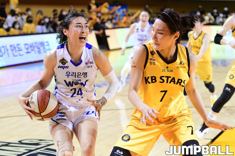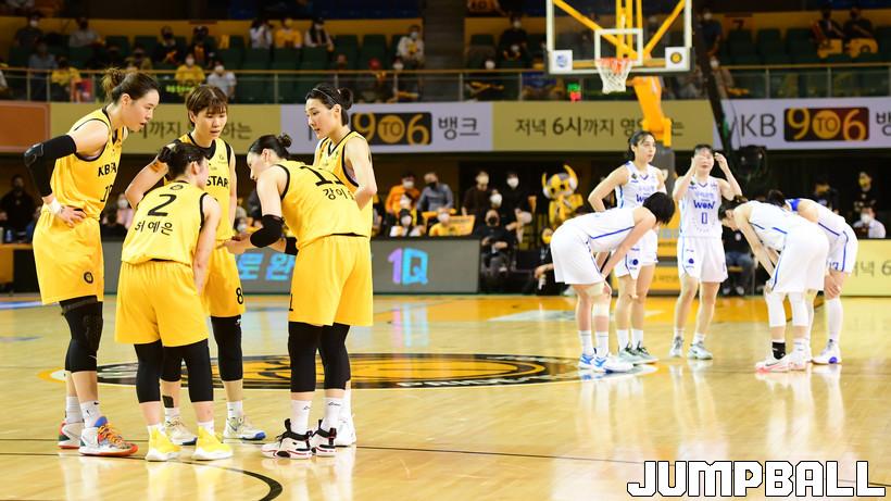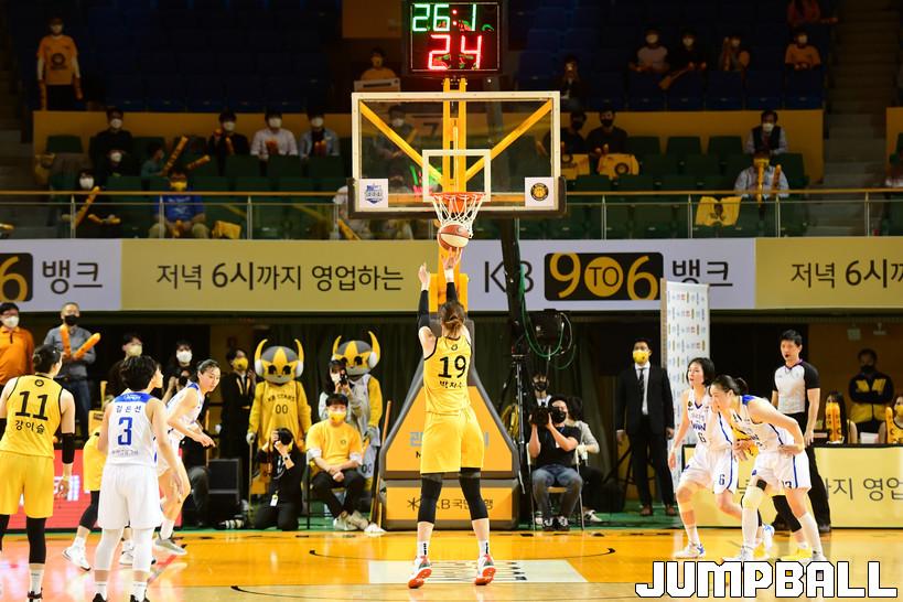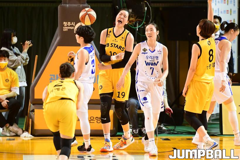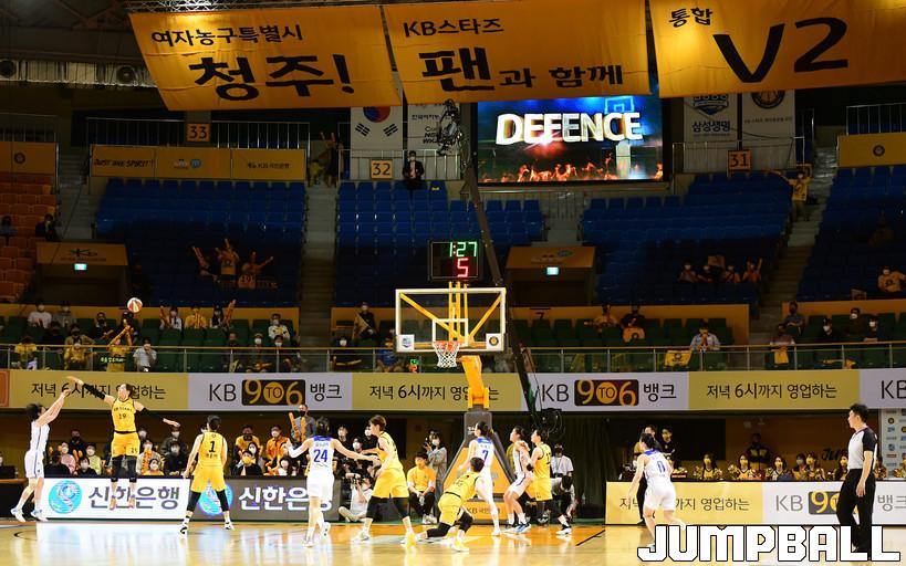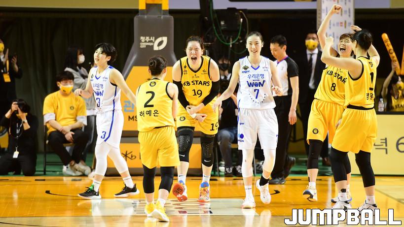 12일 청주실내체육관에서 열린 '삼성생명 2021-2022 여자프로농구 챔피언결정전 2차전' 청주 KB스와 아산 우리은행의 경기, KB가 우리은행에 80-73으로 승리하며 챔프전 1차전과 2차전 승리를 가져갔다. KB와 우리은행 경기 화보.