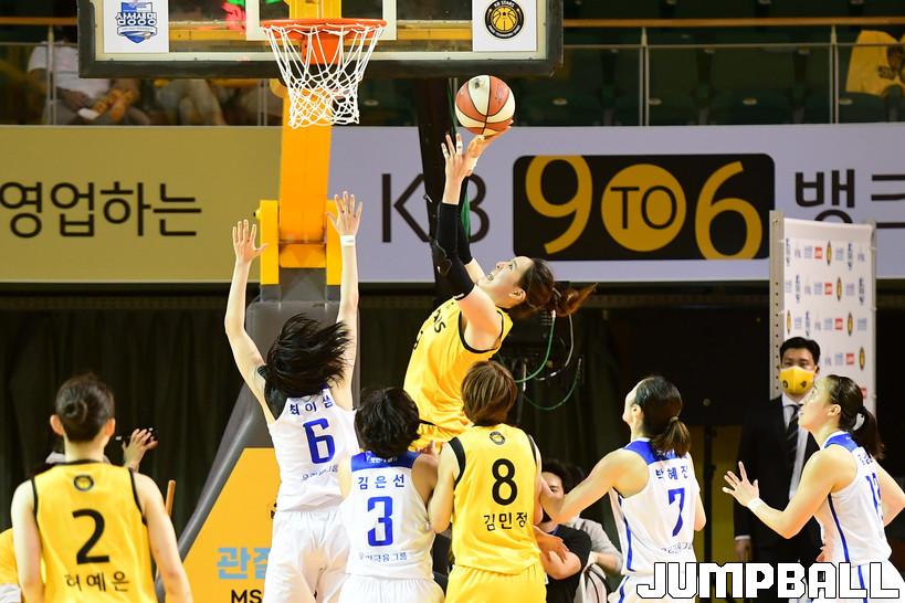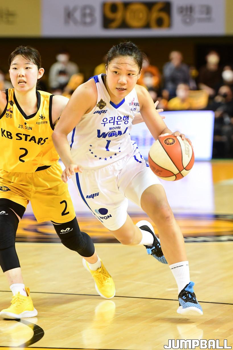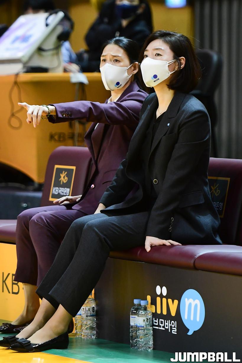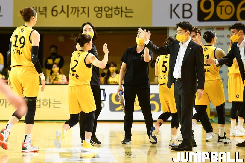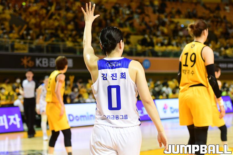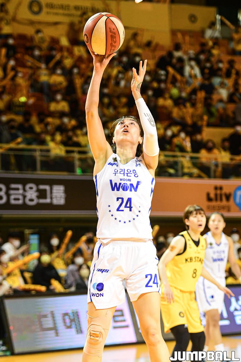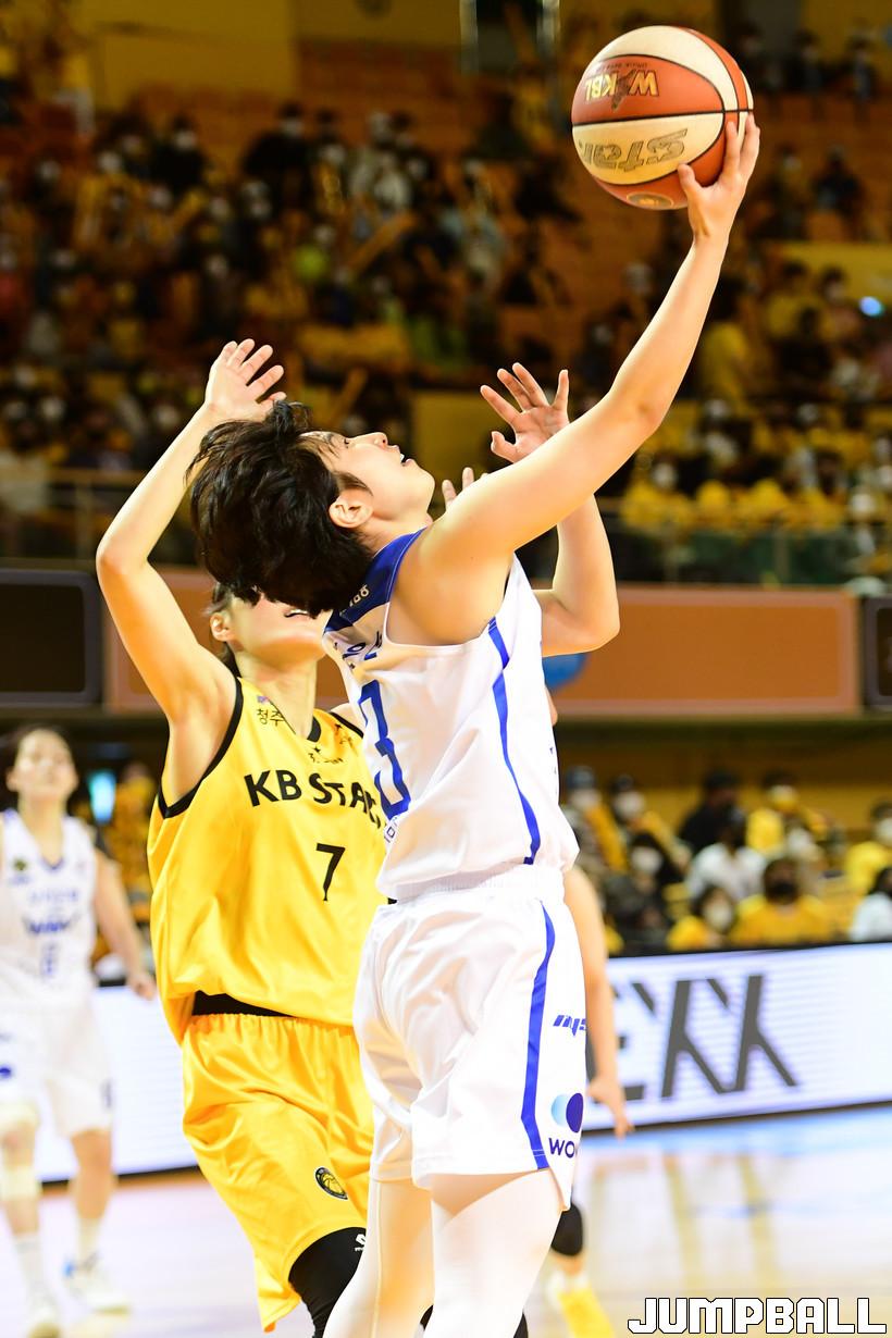 12일 청주실내체육관에서 열린 '삼성생명 2021-2022 여자프로농구 챔피언결정전 2차전' 청주 KB스와 아산 우리은행의 경기, KB가 우리은행에 80-73으로 승리하며 챔프전 1차전과 2차전 승리를 가져갔다. KB와 우리은행 경기 화보.