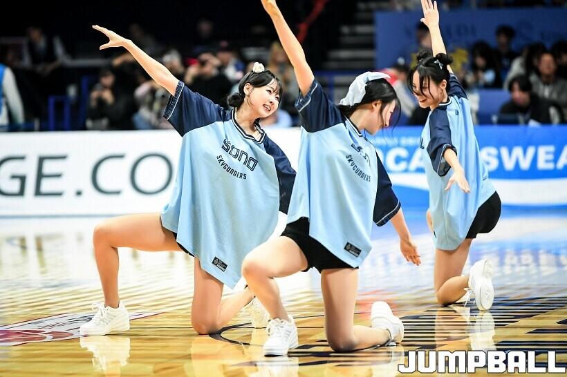 [점프볼=고양/유용우 기자] 29일 고양 소노 아레나에서 열린 2025-2026 LG전자 프로농구 고양 소노와 서울 SK의 경기, 소노 치어리더들이 다양한 퍼포먼스로 매력을 발산하며 팬들의 함성을 이끌고 있다