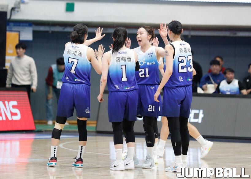 홍유순(27점 12리바운드 2어시스트)이 종전 19점을 뛰어넘는 개인 1경기 최다 득점을 기록한 가운데 신지현(18점 3점슛 4개 3리바운드 2어시스트 2스틸), 신이슬(11점 14리바운드 2어시스트 2스틸)이 힘을 보탰다.