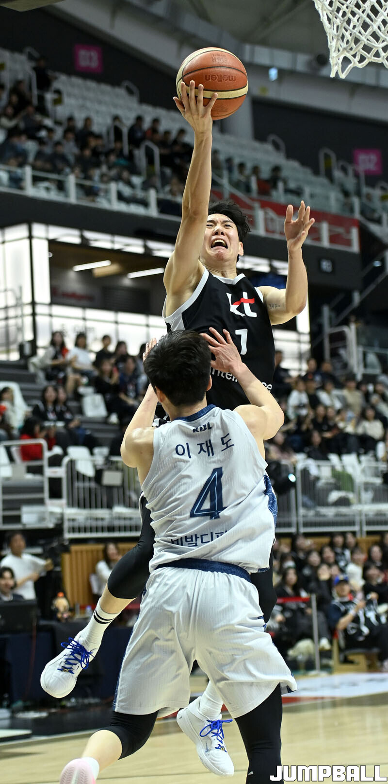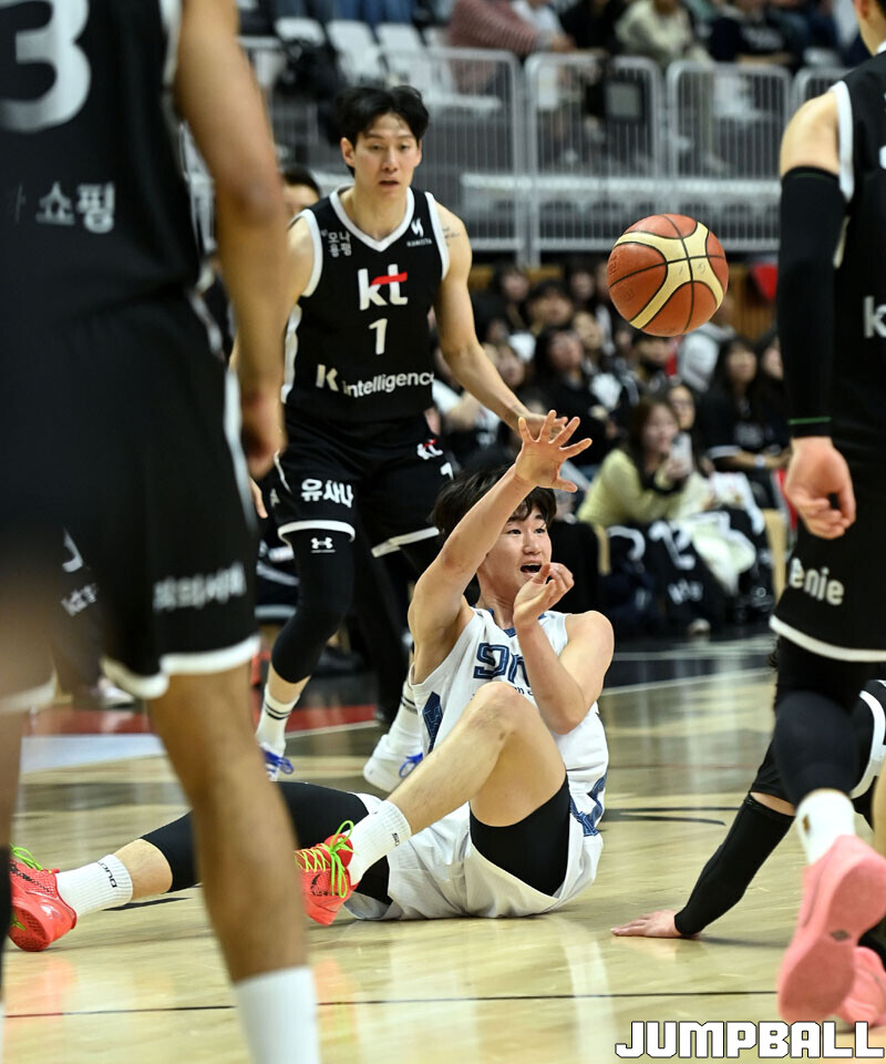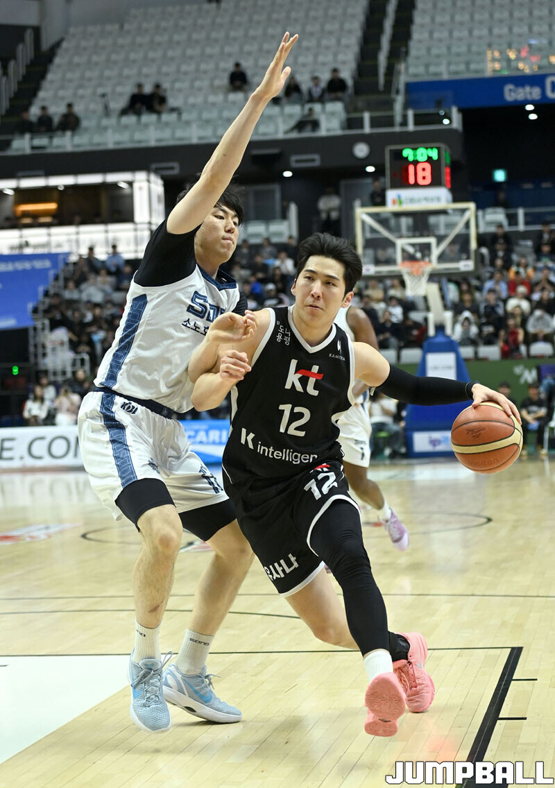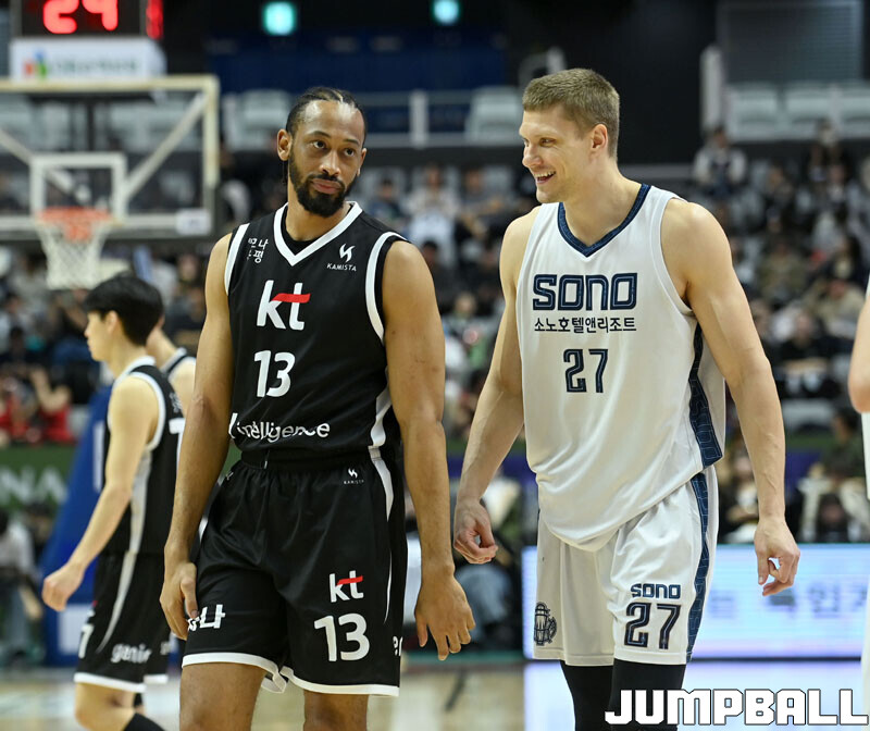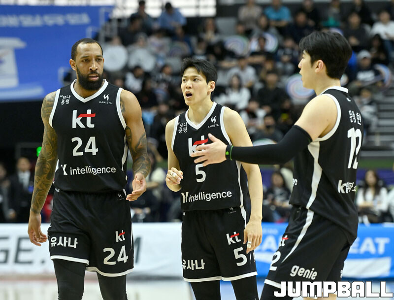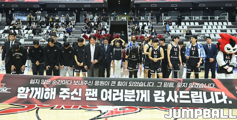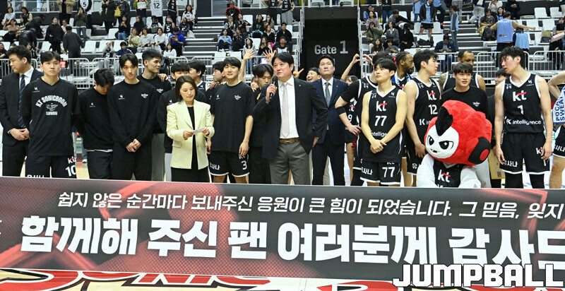 [점프볼=수원/김종원 기자] 8일 수원 KT 소닉붐 아레나에서 열린 2025-2026 LG전자 프로농구 정규시즌 수원 KT와 고양 소노 경기에서 KT가 정규리그 마지막 경기를 76-72로 승리하며 5할 승률로 시즌을 마치게 되었다.