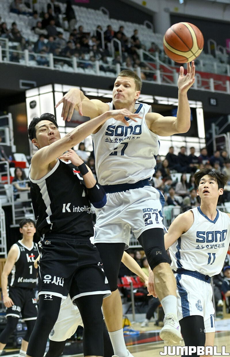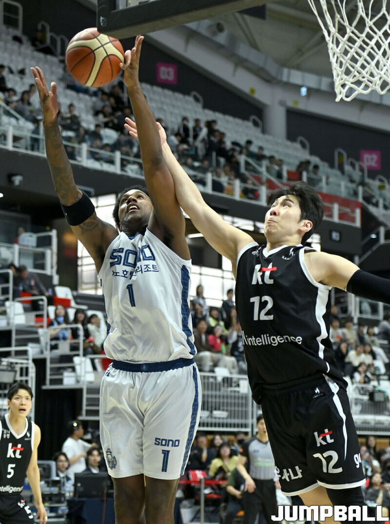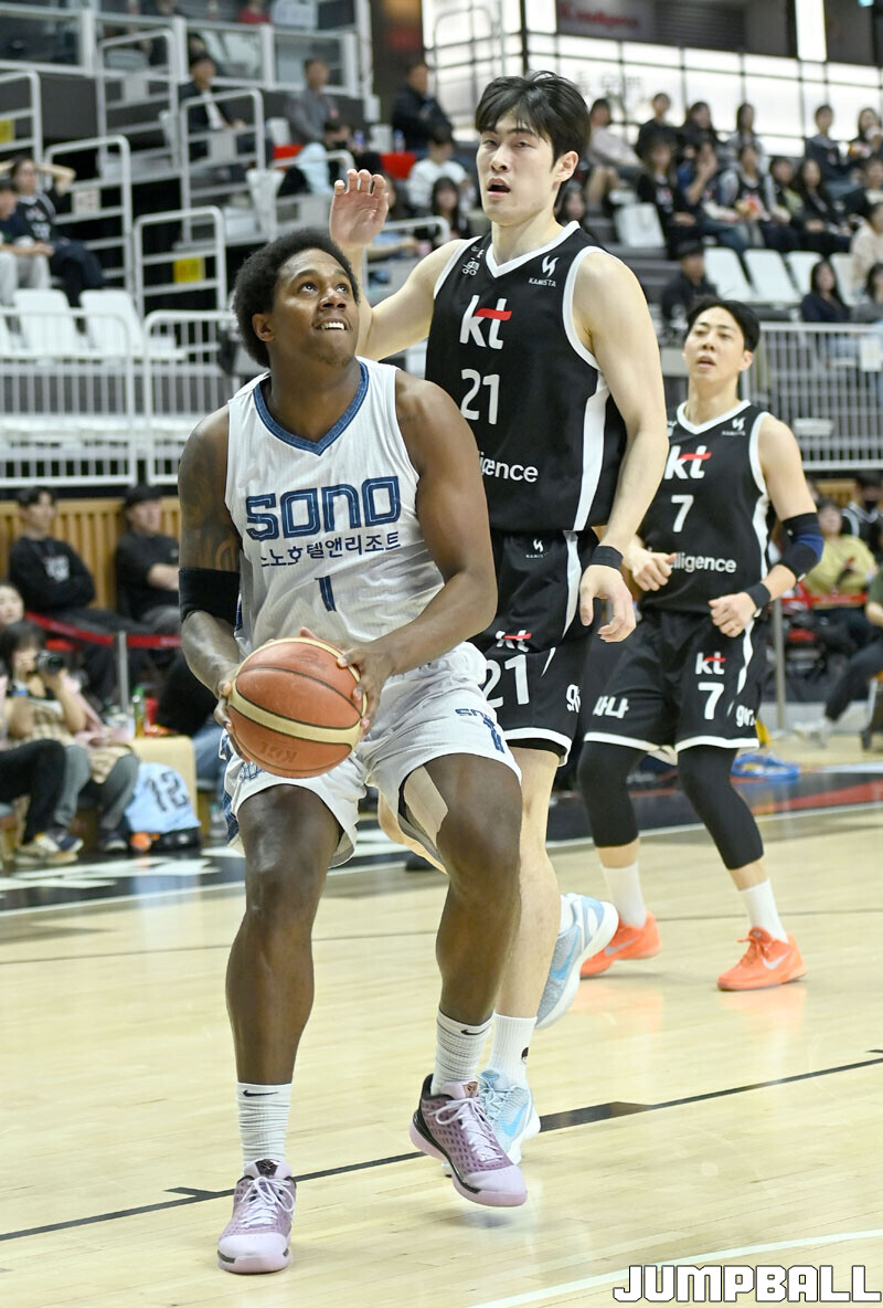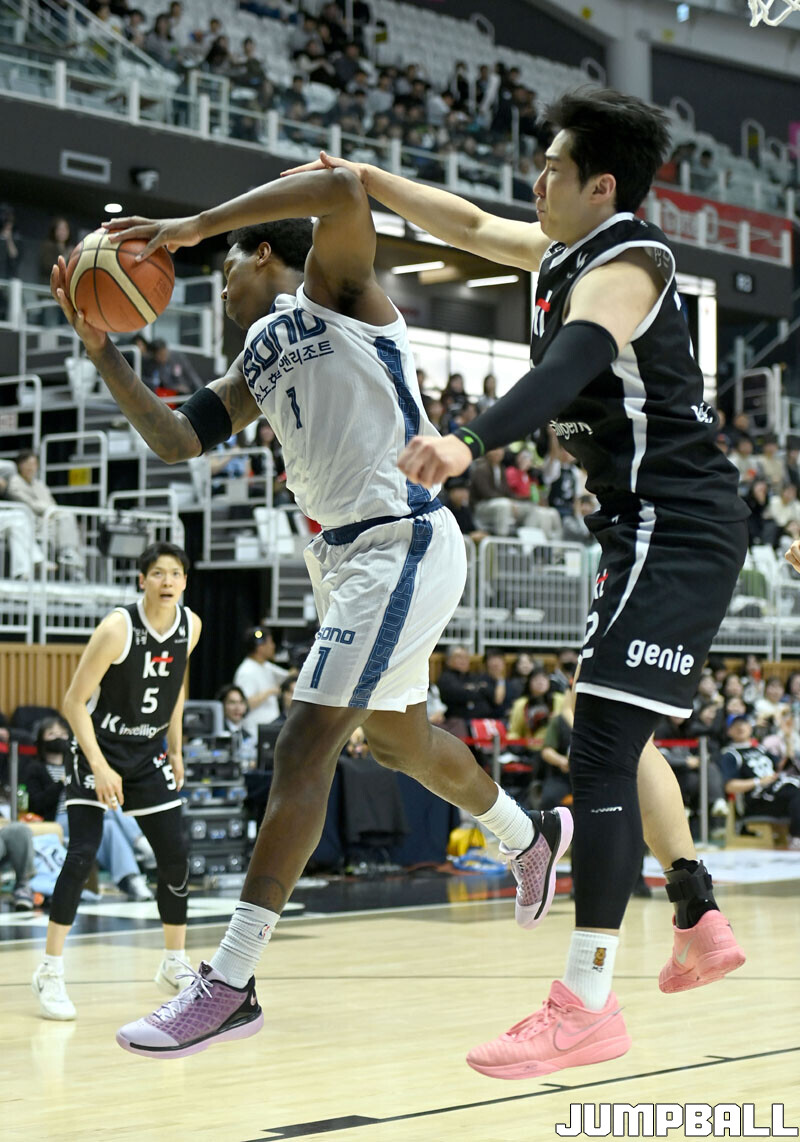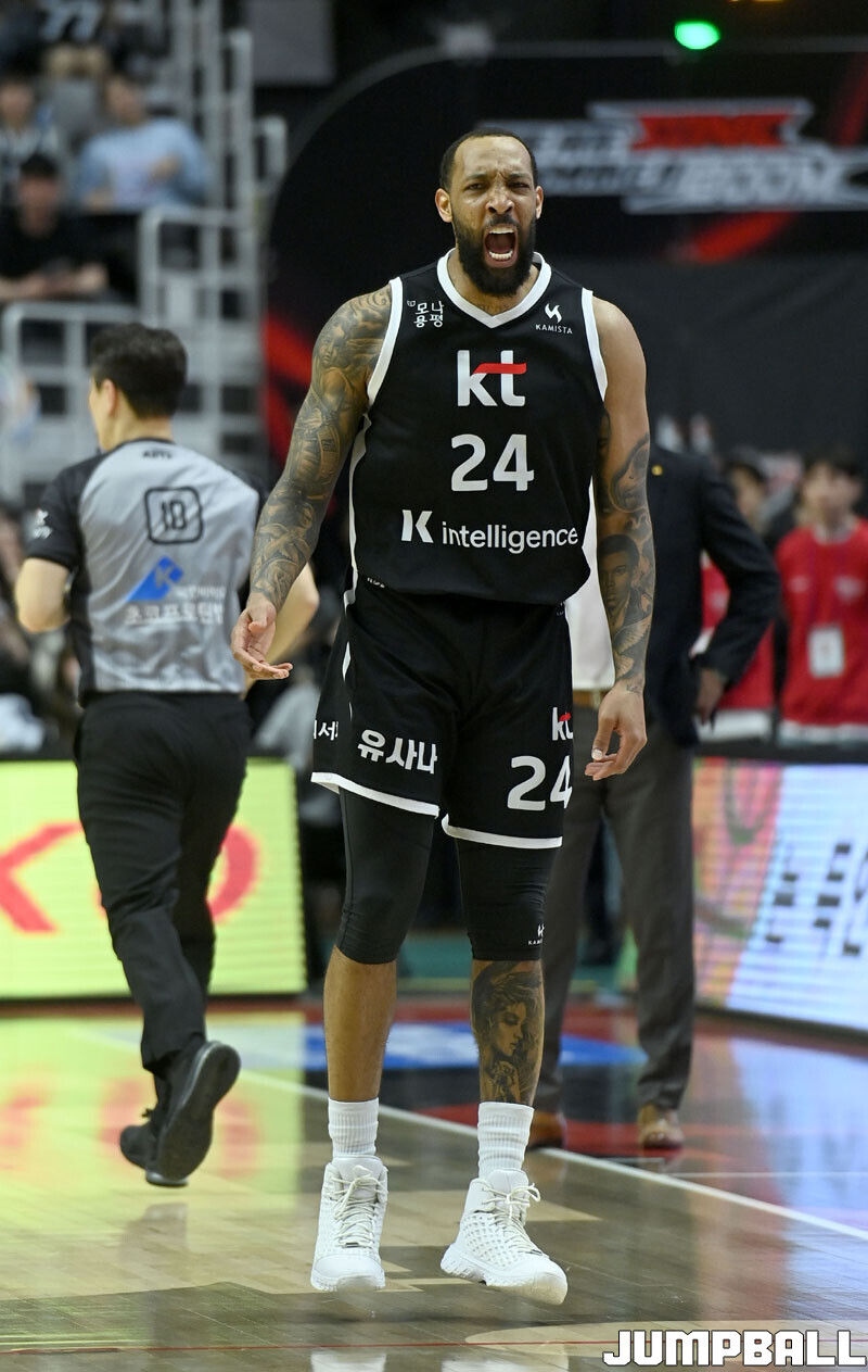 [점프볼=수원/김종원 기자] 8일 수원 KT 소닉붐 아레나에서 열린 2025-2026 LG전자 프로농구 정규시즌 수원 KT와 고양 소노 경기에서 KT가 정규리그 마지막 경기를 76-72로 승리하며 5할 승률로 시즌을 마치게 되었다.