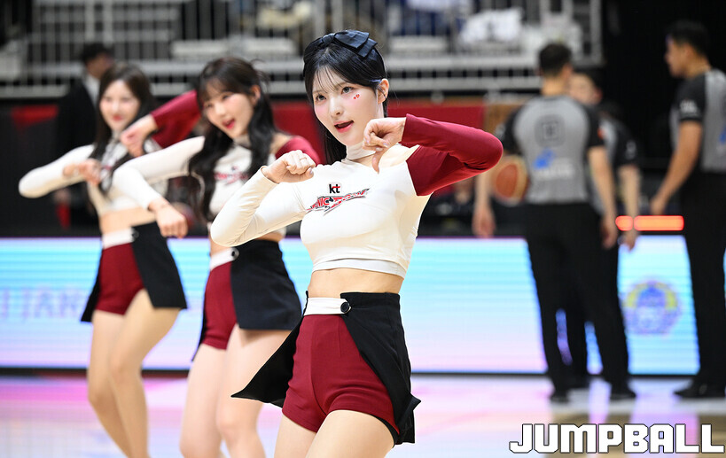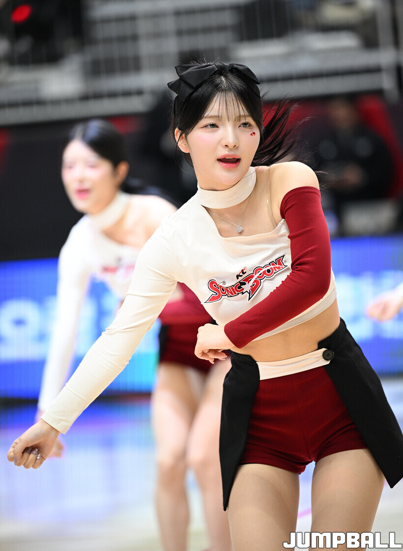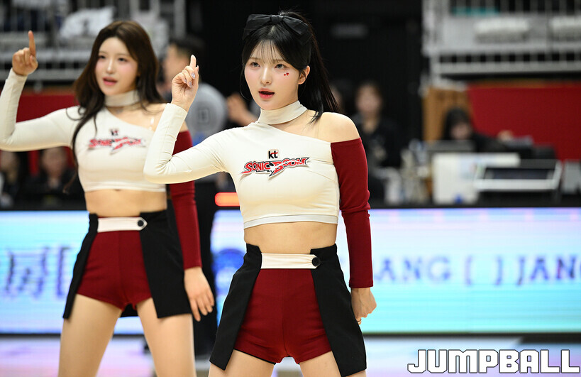 [점프볼=수원/문복주 기자] 18일 수원 KT 소닉붐 아레나에서 열린 2025-2026 LG전자 프로농구 6라운드 수원 KT와 원주 DB의 경기에 KT 소닉걸스가 공연을 했다.