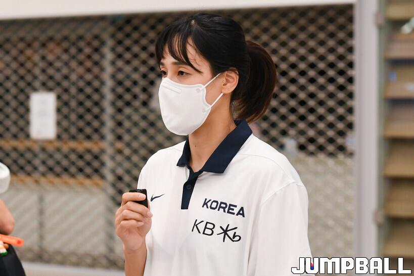 정선민 감독이 이끄는 한국 여자 농구 대표팀이 30일 인천공항을 통해 귀국했다.한국 여자농구 대표팀 김단비가 영상 인터뷰를 하고 있다.