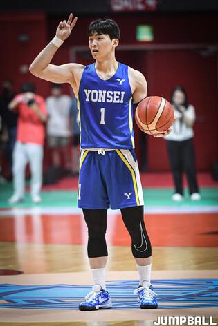 8일 고양체육관에서 열린 2023 정기 고연전, 고려대 박무빈이 점프슛을 시도하고 있다.
