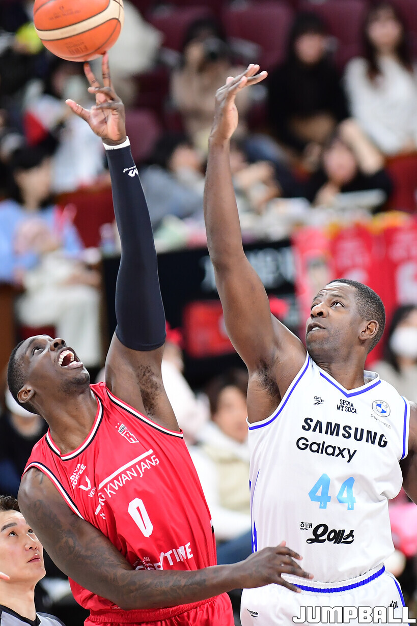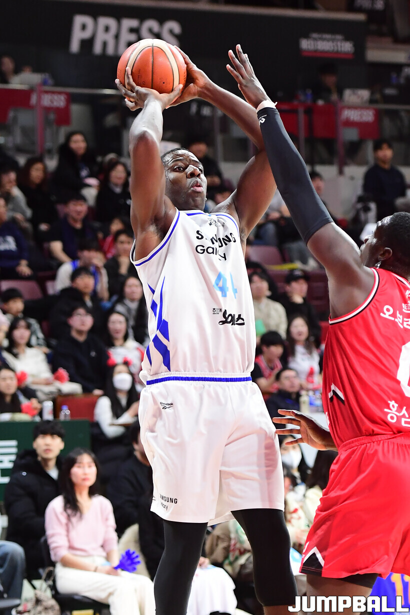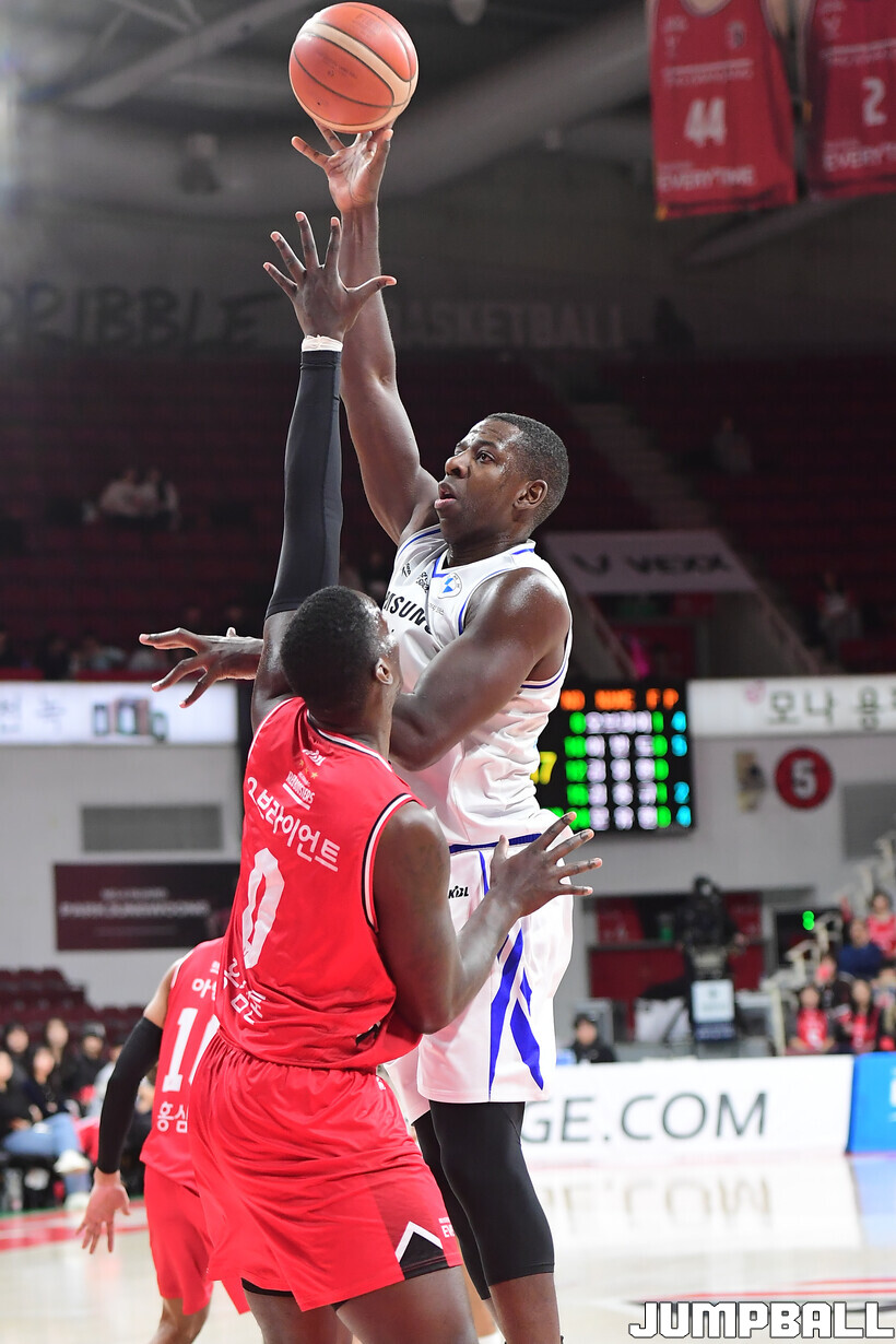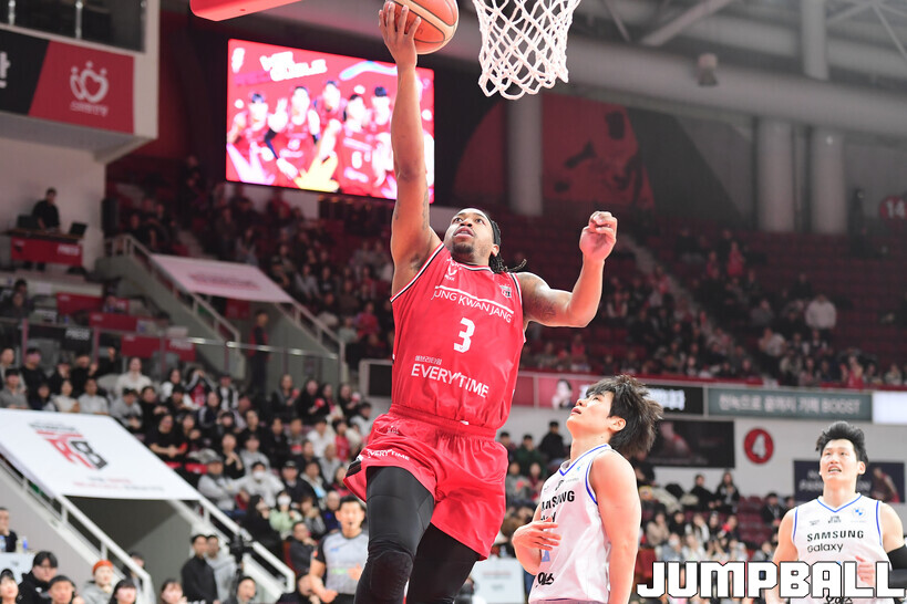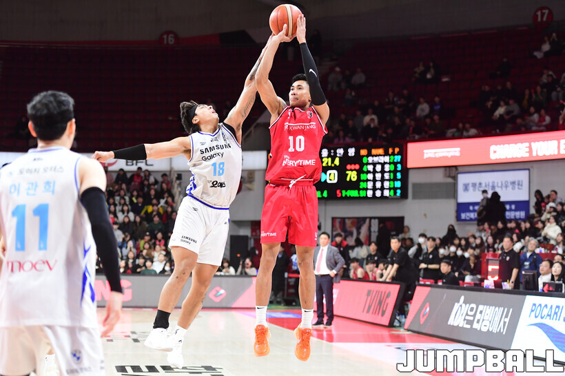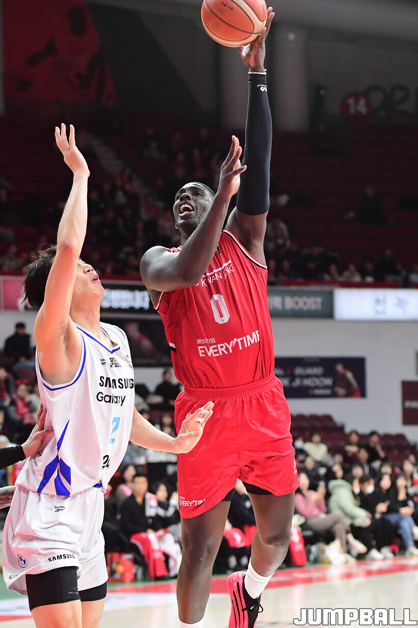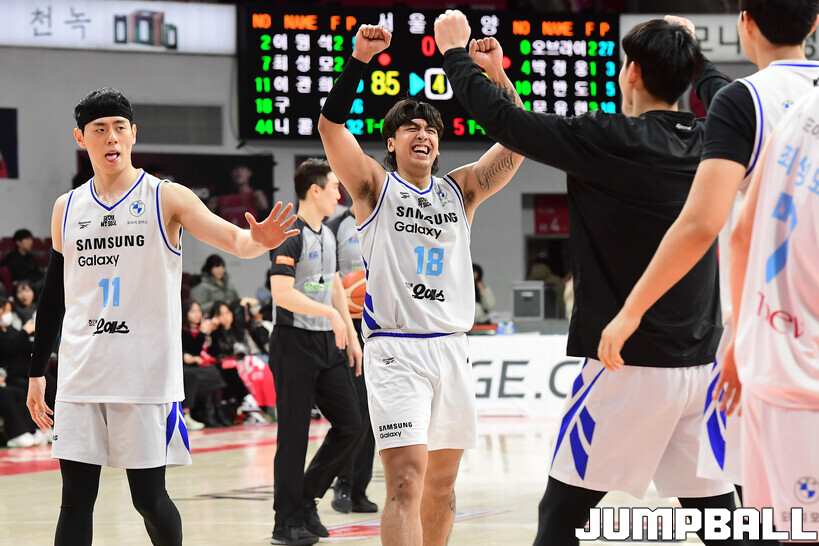 [점프볼=안양/박상혁 기자] 29일 안양 정관장 아레나에서 열린 2025-2026 LG전자 프로농구 안양 정관장과 서울 삼성의 경기, 삼성이 앤드류 니콜슨과 저스틴 구탕이 각각 32점과 16점을 뽑아내고 외곽 득점이 살아나면서 조니 오브라이언트가 27점으로 분전한 정관장에 85-76으로 승리했다.