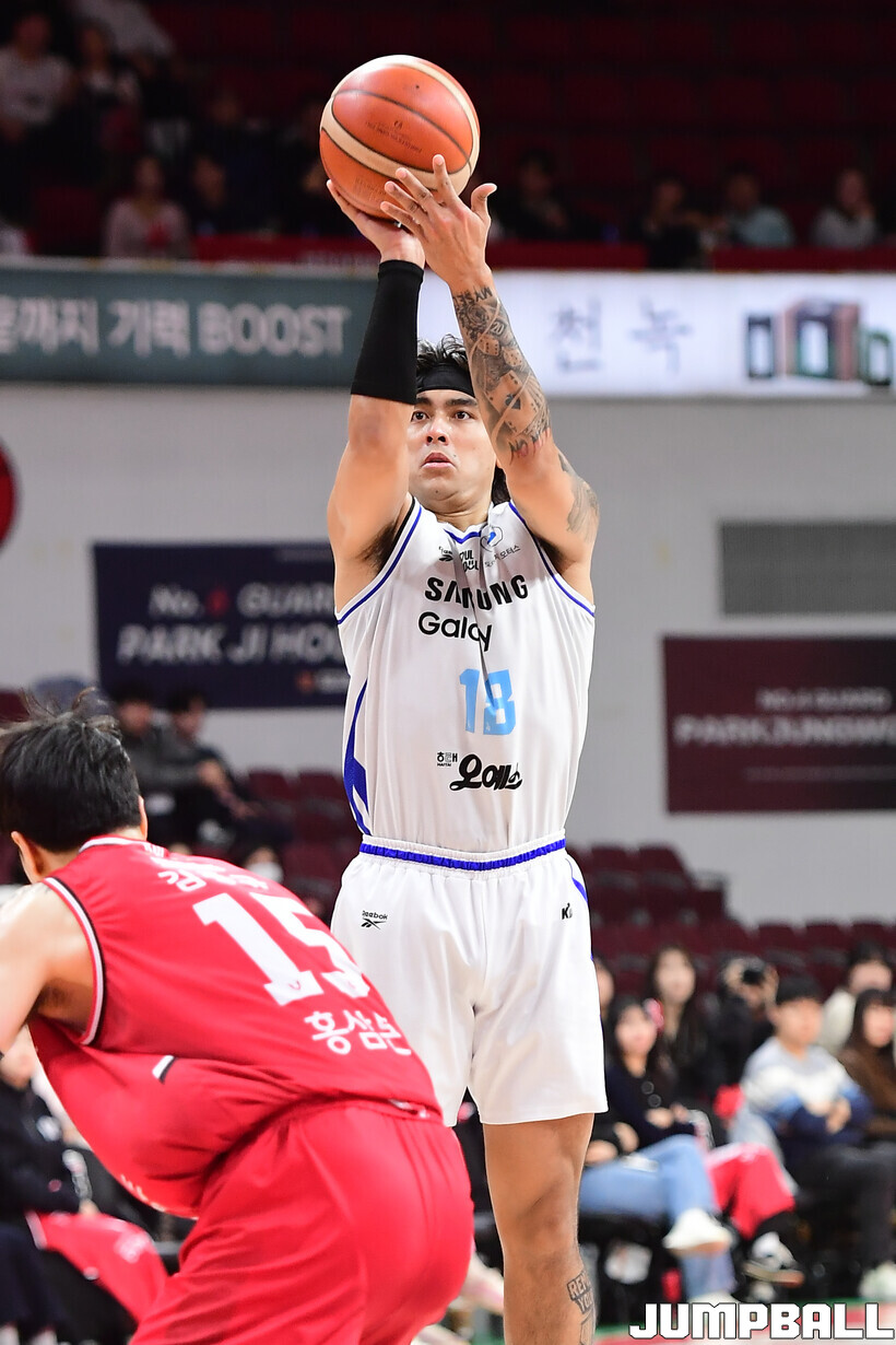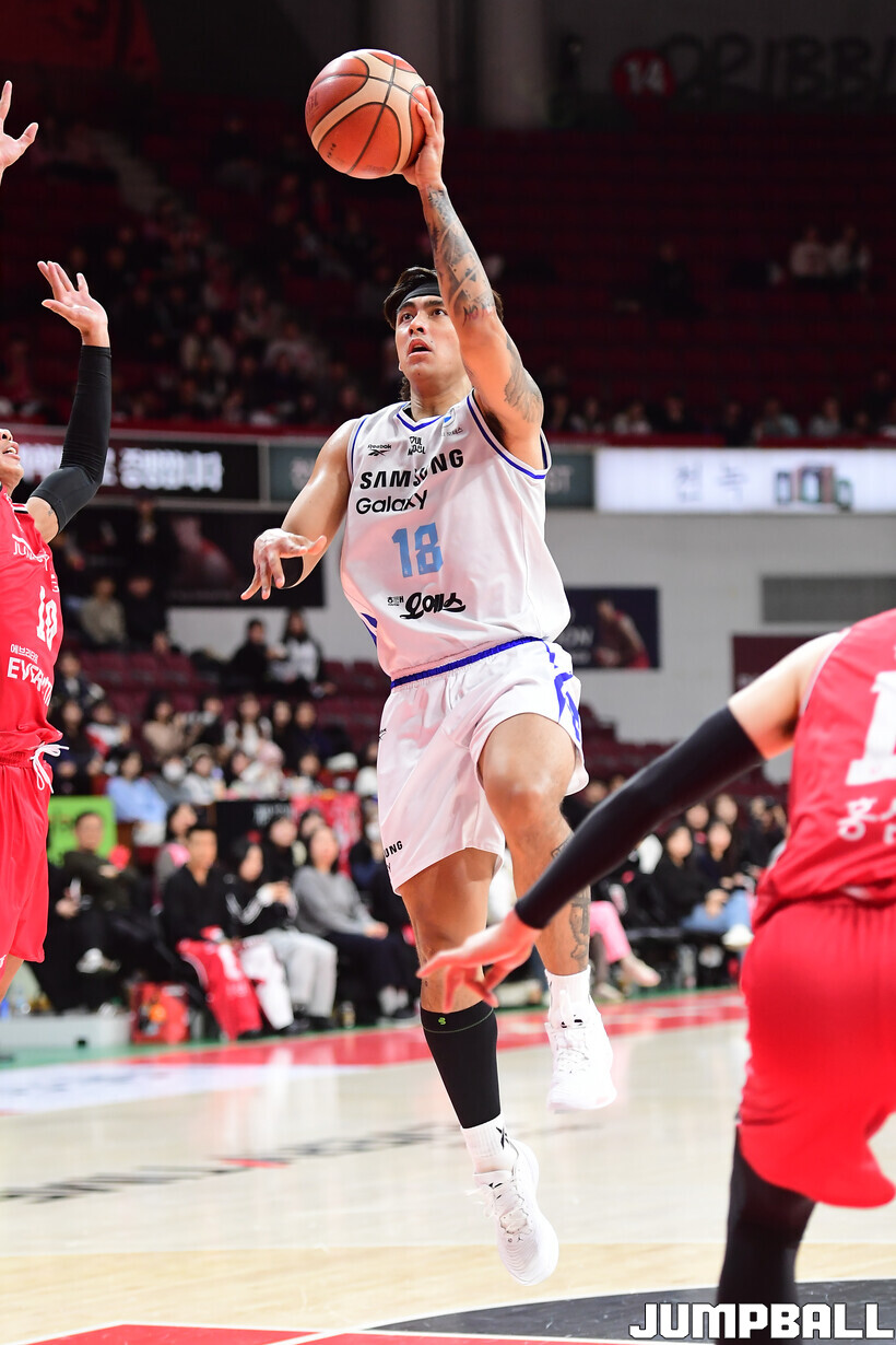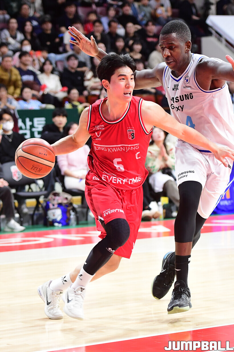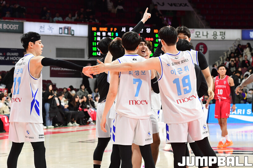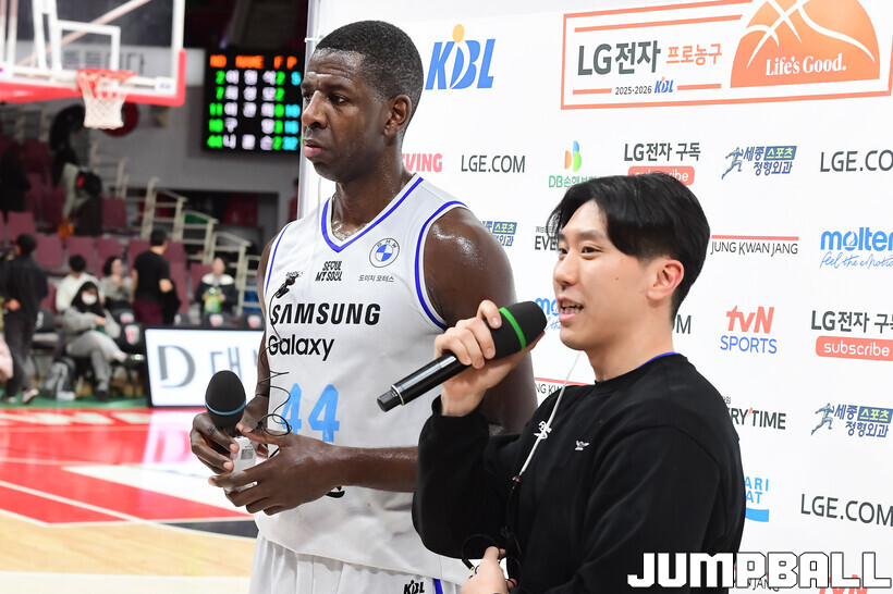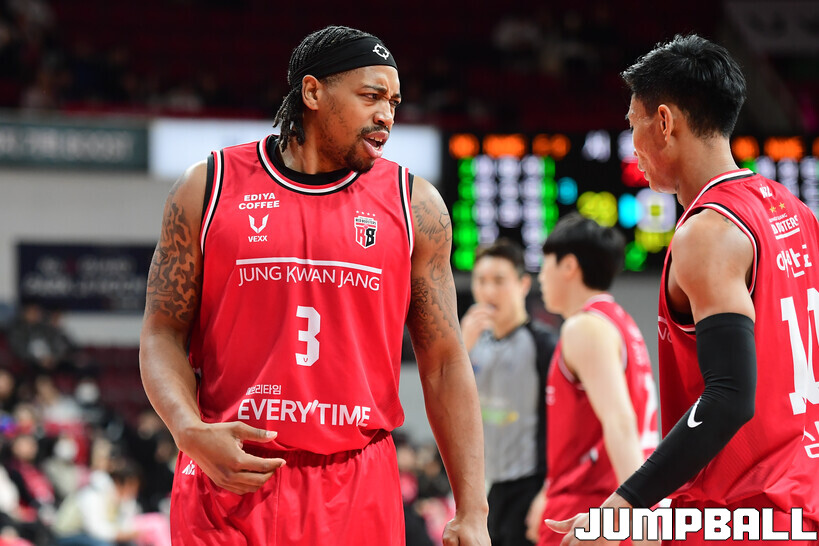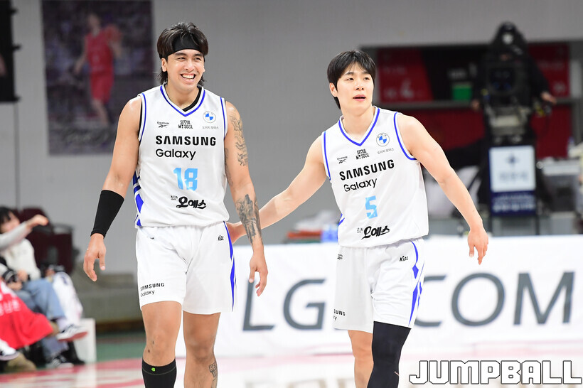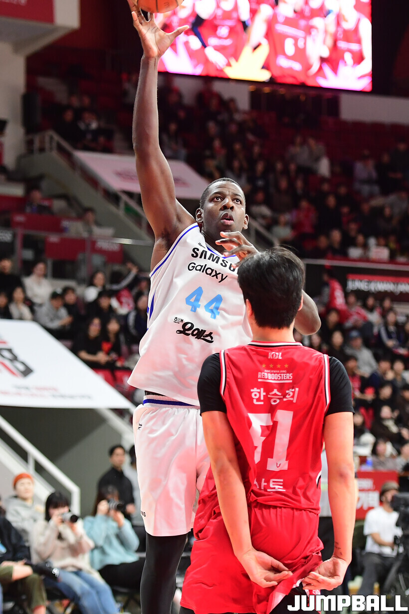 [점프볼=안양/박상혁 기자] 29일 안양 정관장 아레나에서 열린 2025-2026 LG전자 프로농구 안양 정관장과 서울 삼성의 경기, 삼성이 앤드류 니콜슨과 저스틴 구탕이 각각 32점과 16점을 뽑아내고 외곽 득점이 살아나면서 조니 오브라이언트가 27점으로 분전한 정관장에 85-76으로 승리했다.