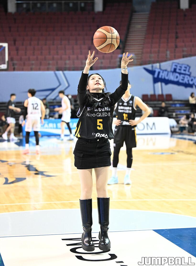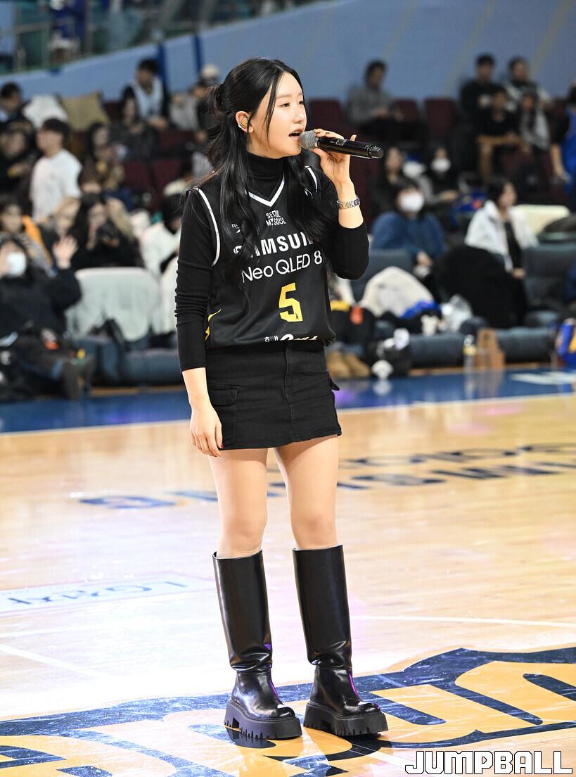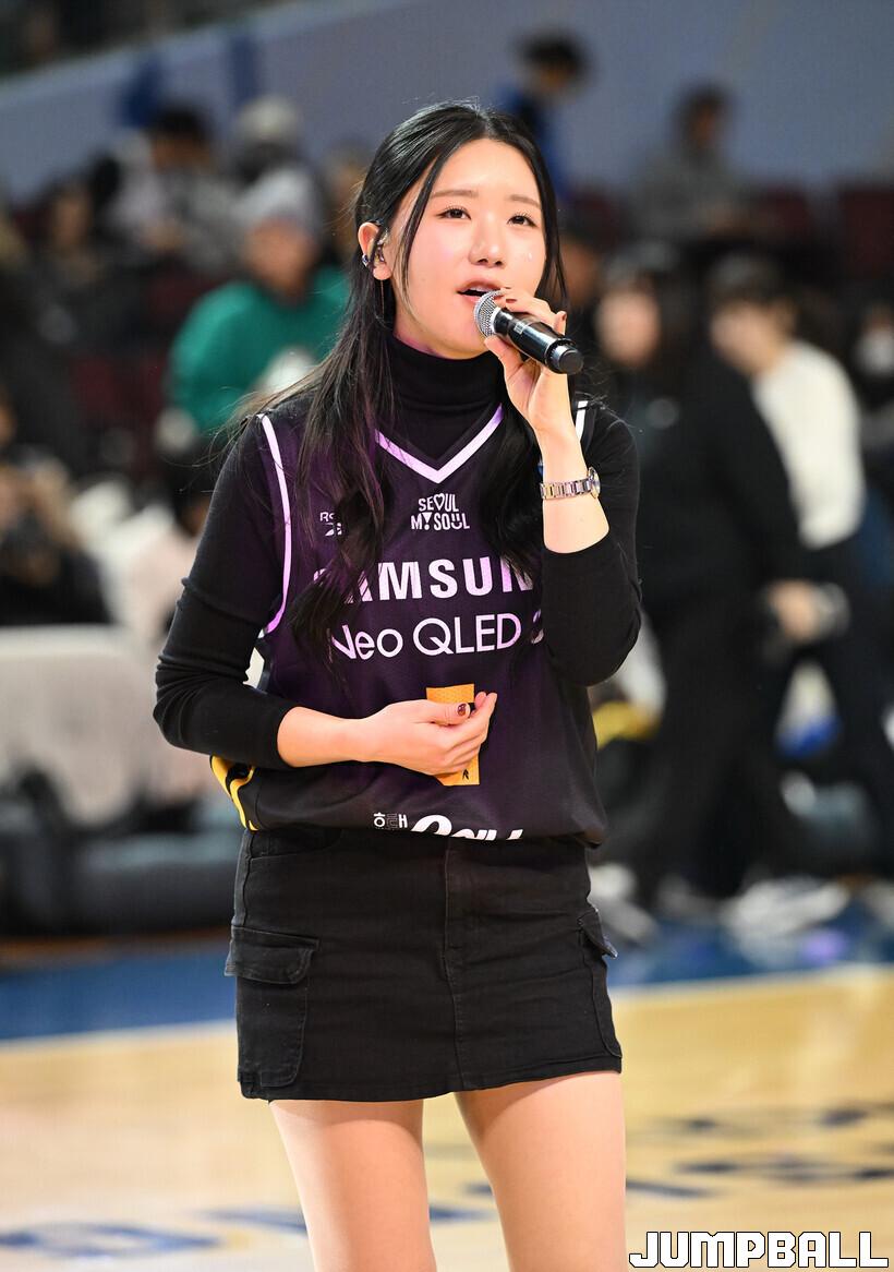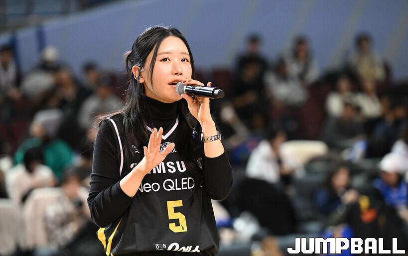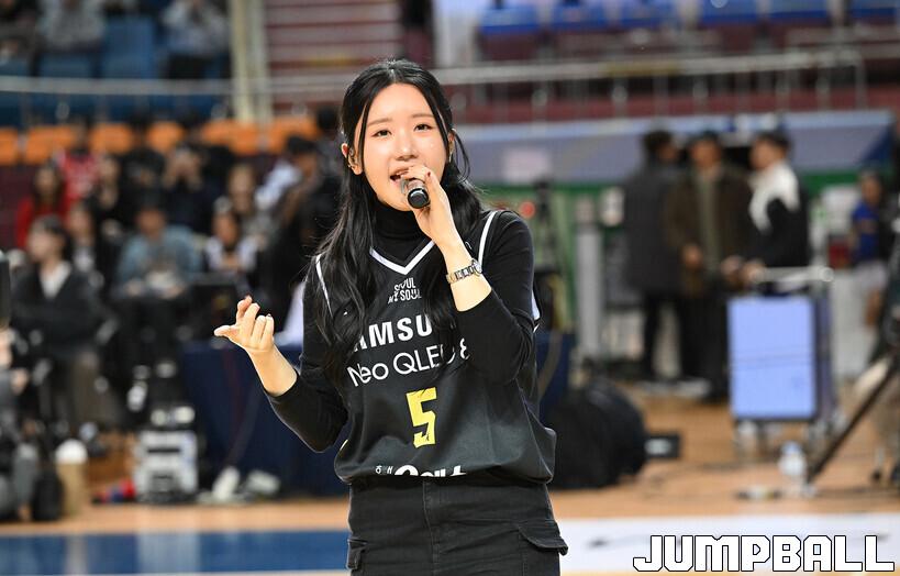[점프볼=잠실/문복주 기자] 5일 잠실체육관에서 펼쳐진 2025-2026 LG전자 프로농구 서울 삼성과 수원 KT의 경기에 경기전 가수 송하예가 승리기원 시투와 하프타임에 특별 공연을 했다.
