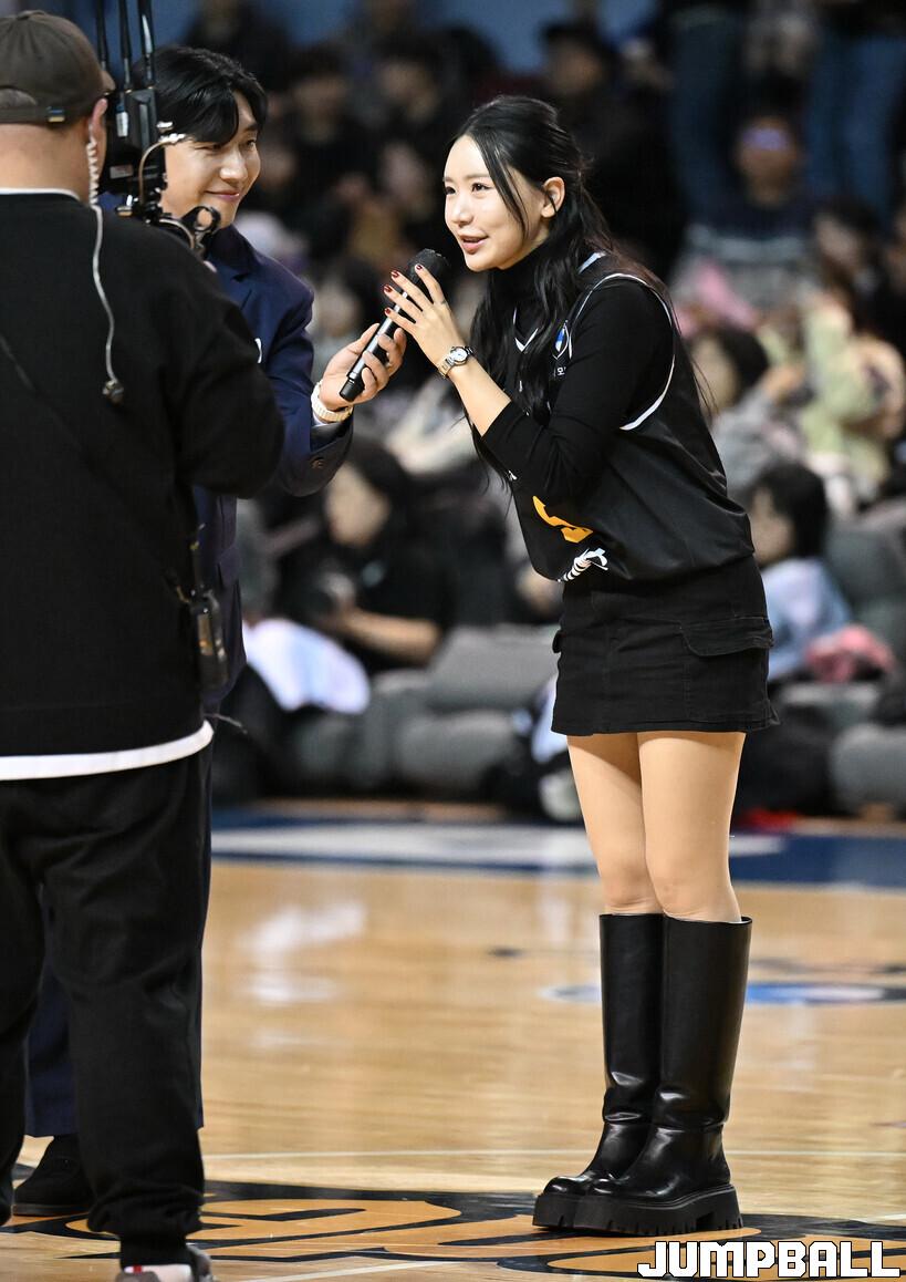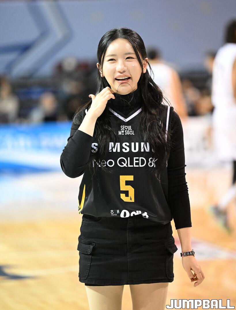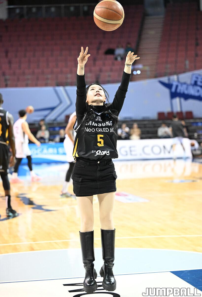 [점프볼=잠실/문복주 기자] 5일 잠실체육관에서 펼쳐진 2025-2026 LG전자 프로농구 서울 삼성과 수원 KT의 경기에 경기전 가수 송하예가 승리기원 시투와 하프타임에 특별 공연을 했다.