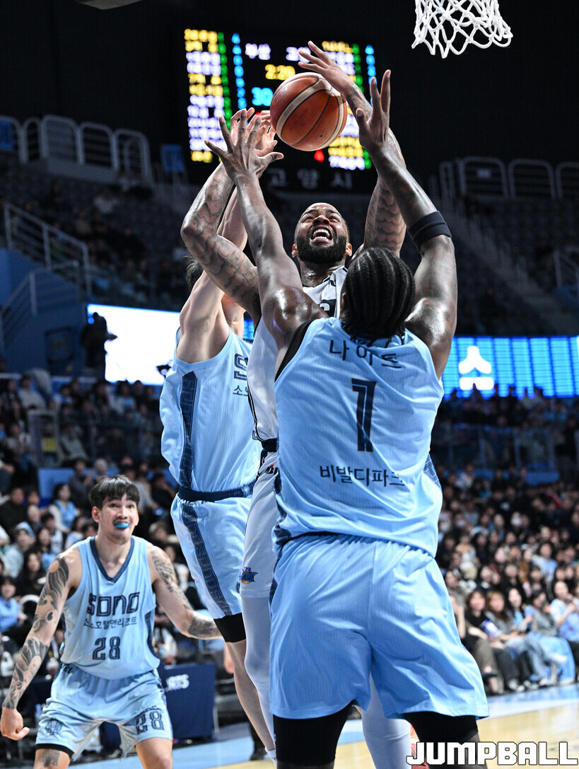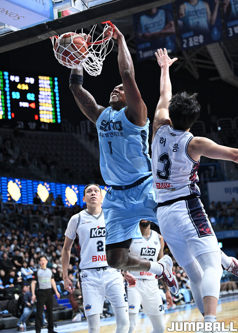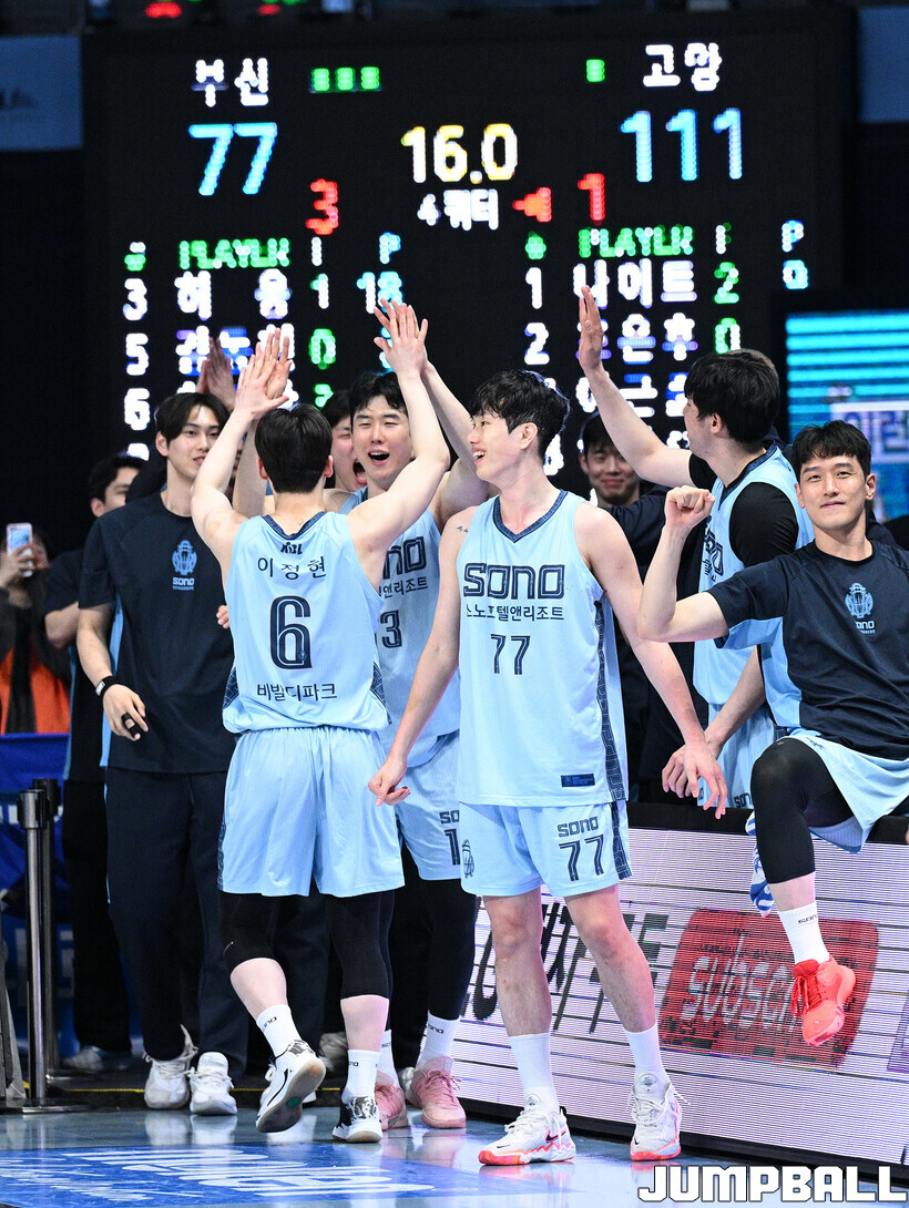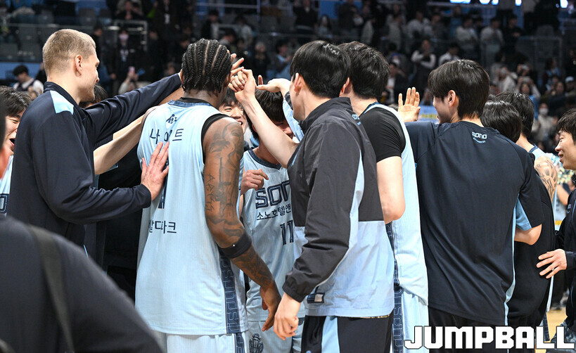 [점프볼=고양/문복주 기자] 고양 소노는 19일 고양 소노 아레나에서 열린 2025-2026 LG전자 프로농구 부산 KCC와의 6라운드 맞대결에서 111-77로 승리했다. 구단 최다 8연승을 질주한 소노는 25승 23패를 기록, 단독 5위로 올라섰다. 소노의 이기디우스 모스카비추스(17점 10리바운드)가 팀내 최다 득점과 함께 더블더블을 기록하고 케빈 켐바오(13점 10어시스트 7리바운드)도 더블더블을 기록하며 힘을 보탰다.