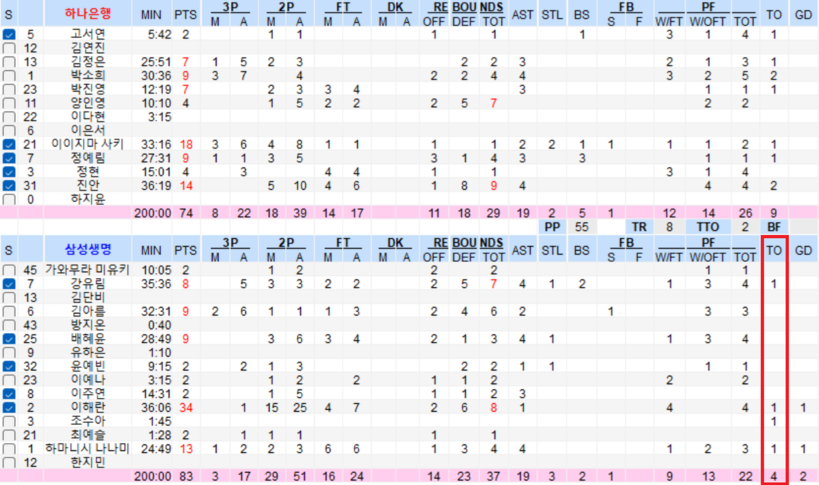 삼성생명은 2쿼터까지 실책 단 1개에 그쳤다. 이마저도 전반 종료 직전 마지막 공격에서 나온 것이었다. 후반에도 흐름은 같았다. 단 3개의 실책만 추가하며, 이날 총 실책은 4개에 불과했다.
