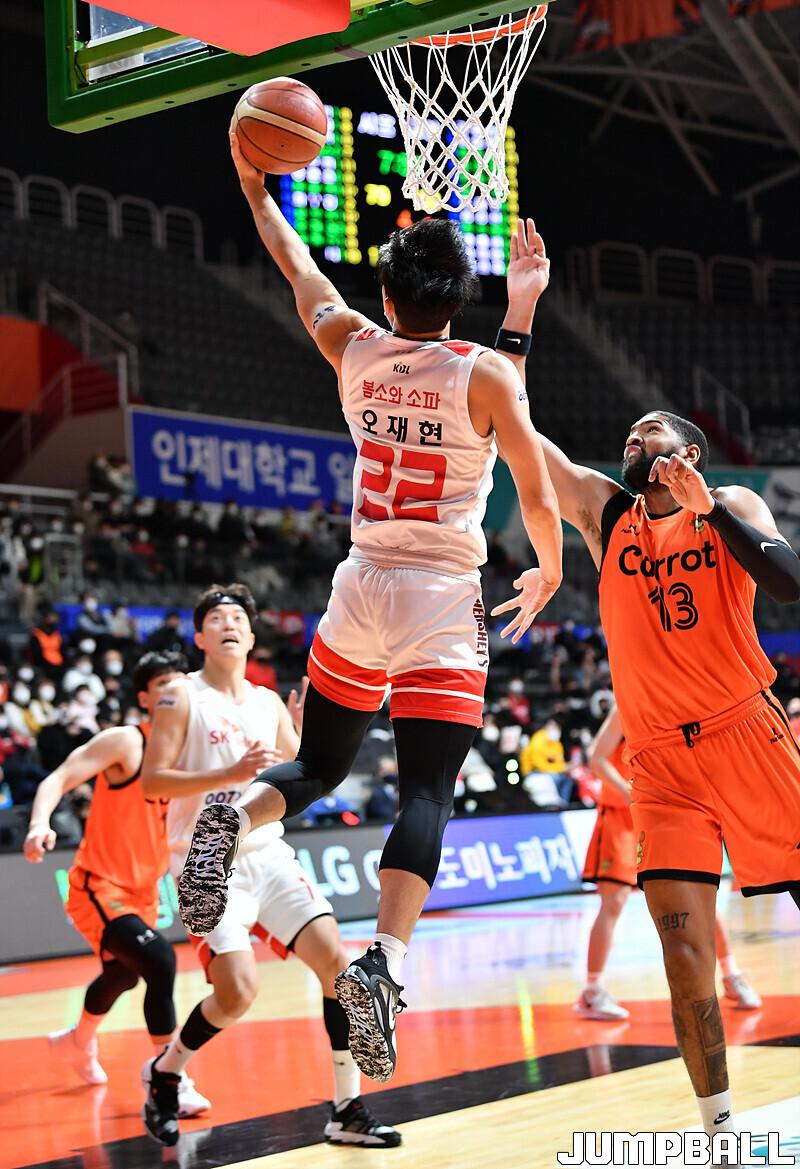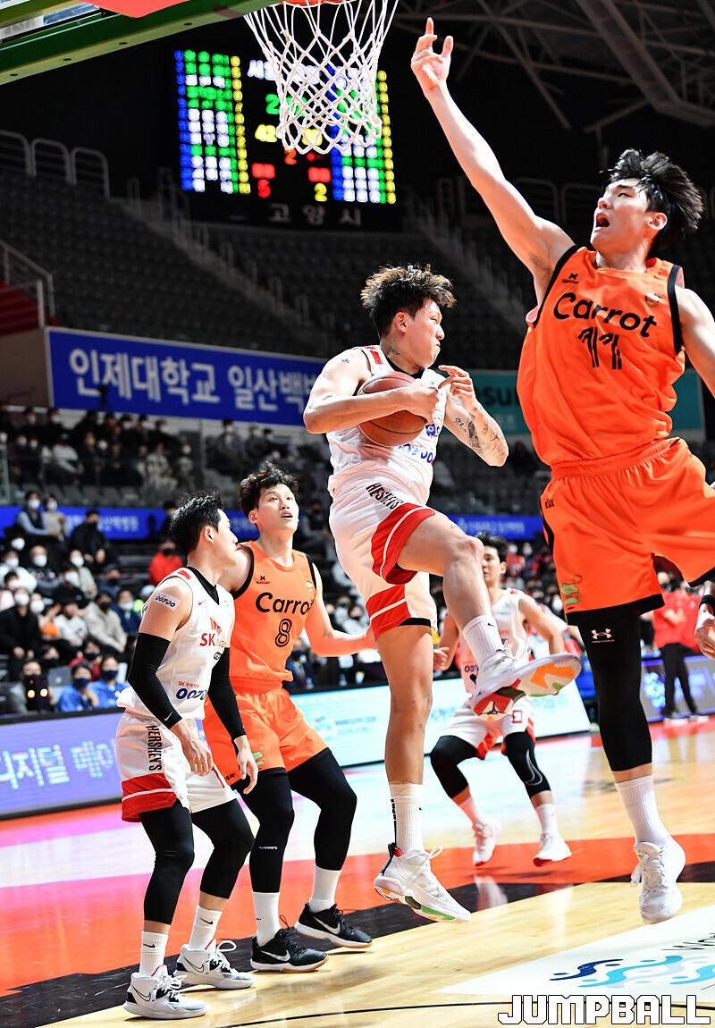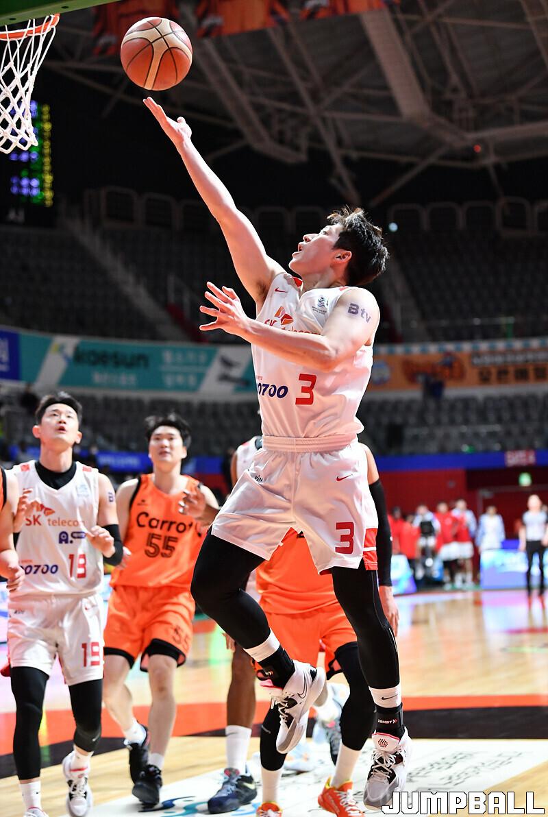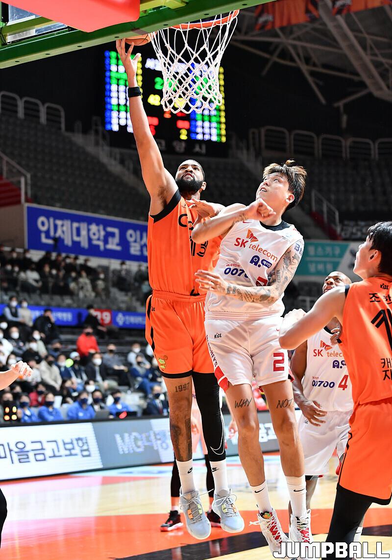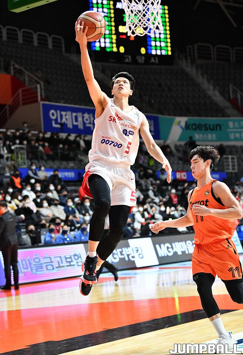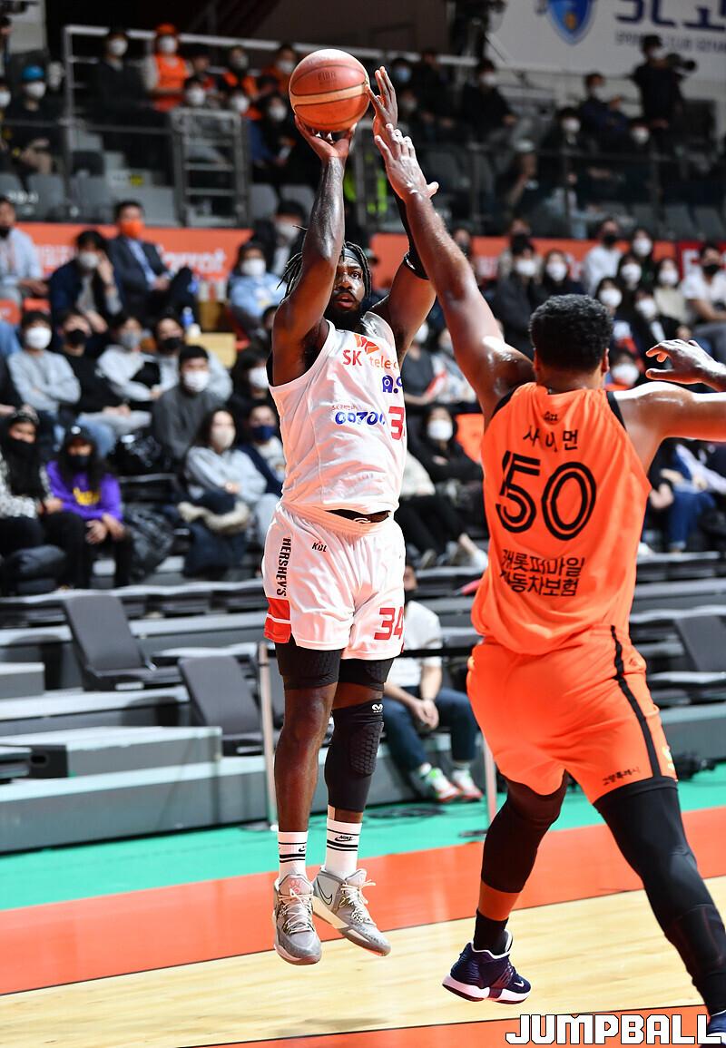 SK는 자밀 워니(19점 4리바운드 2스틸), 허일영(15점 4리바운드), 최성원(14점 7리바운드 8어시스트), 리온 윌리엄스(12점 7리바운드 2어시스트), 김선형(11점 2리바운드 7어시스트)이 고르게 득점했다.