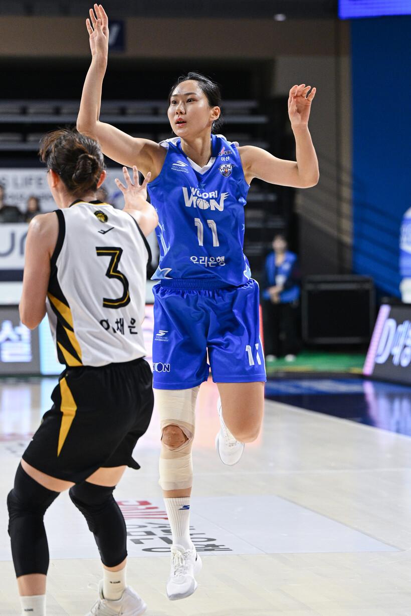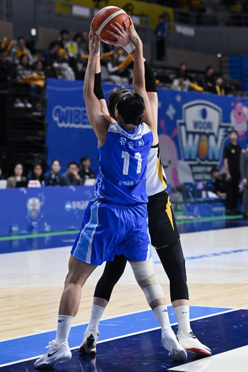 이 순간을 제외하더라도, 유승희는 적극적인 리바운드 참여와 수비로 우리은행의 승리(59-54)와 시즌 첫 연승에 힘을 보탰다.
