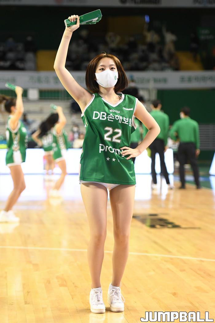 11일 원주종합체육관에서 열린 2021-2022 KGC인삼공사 정관장 프로농구 원주 DB와 전주 KCC의 경기, DB 치어리더가 응원을 하고 있다.