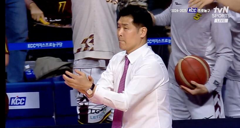 솔직히 그제(6일) 경기를 했던 팀이라서 선수들에게 미팅을 맡겼다. 선수들끼리 미팅을 해서 문제점을 찾아달라고 했다. KCC가 초반에 3점슛이 좋았다. 성공률이 전반에는 70% 가까이 나왔다. 수비를 끝까지 가보자고, 스위치도 해보자고 했다. 4쿼터에서 수비로 11점으로 묶었다. 로테이션이나 몸싸움 등 수비를 잘 했다고 생각한다. 3점슛을 만들어지는 과정이, 양준석이 픽 게임을 한 뒤 파생되는 빠른 볼처리를 잘 했다.