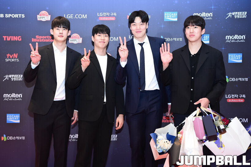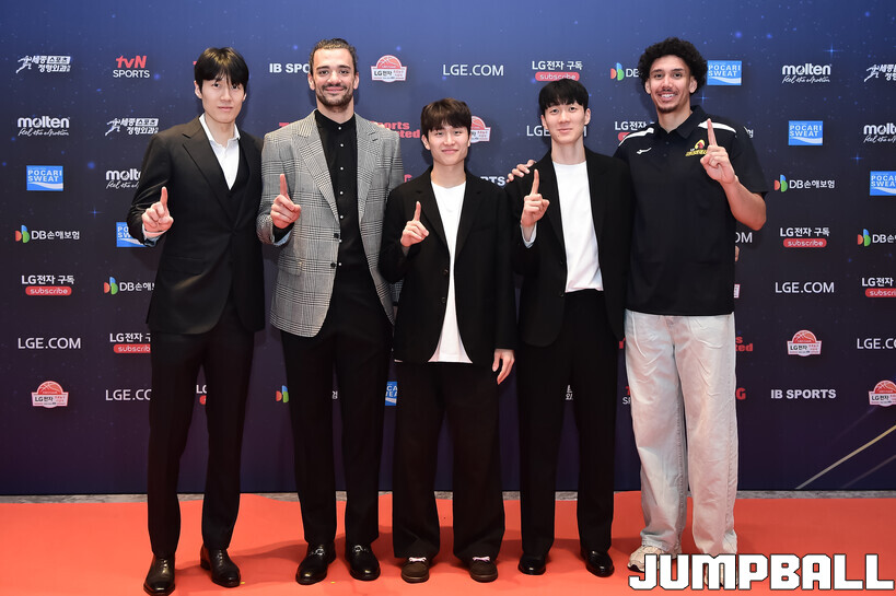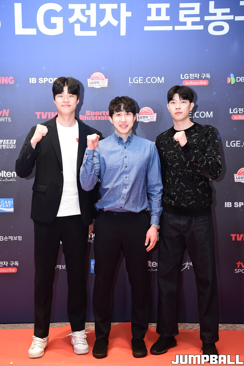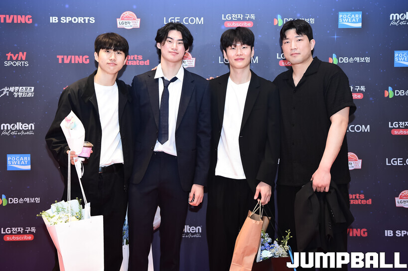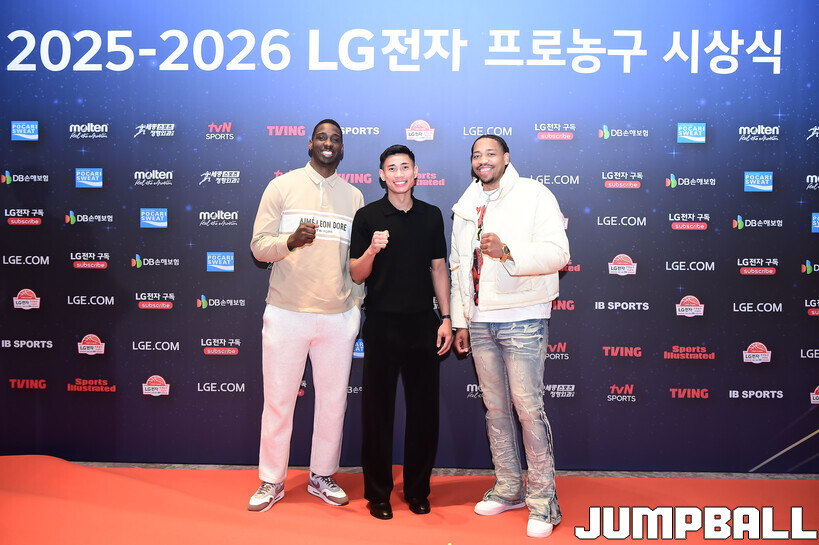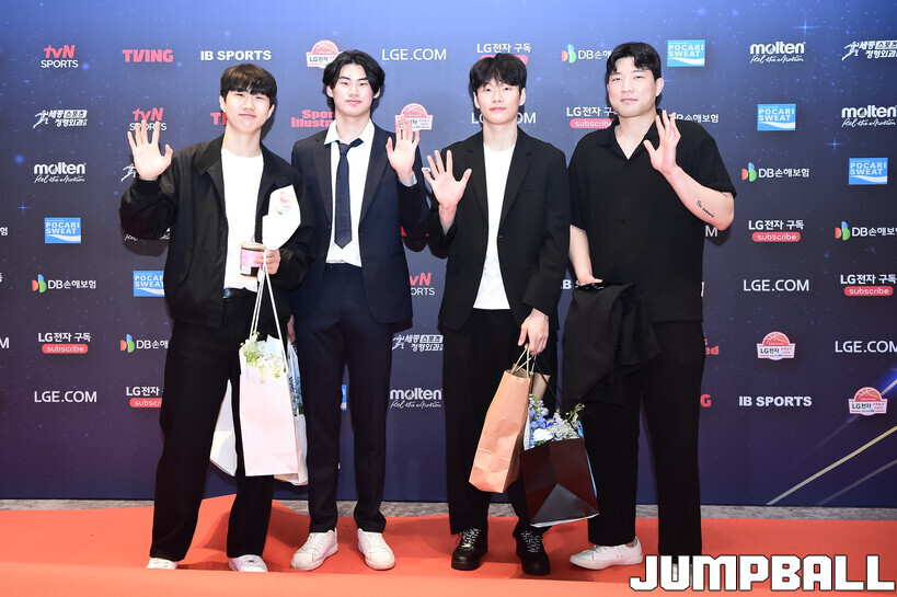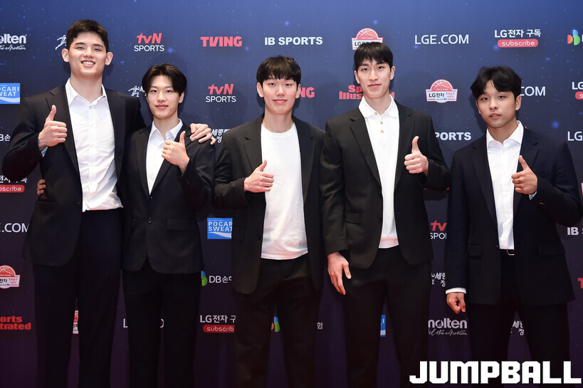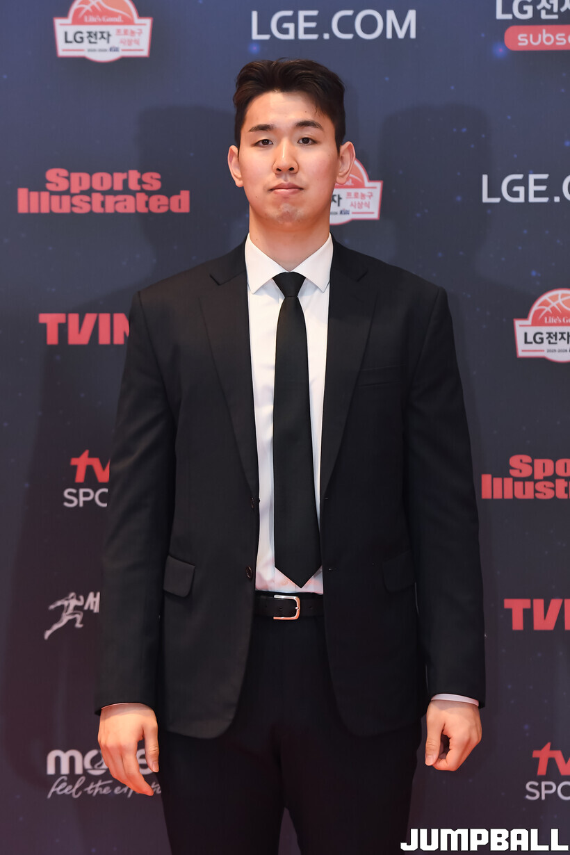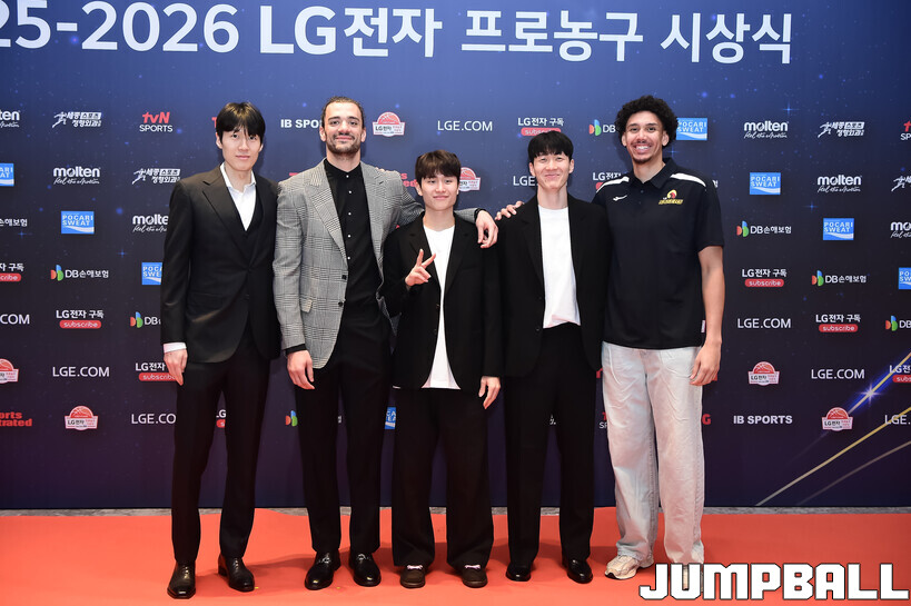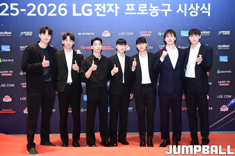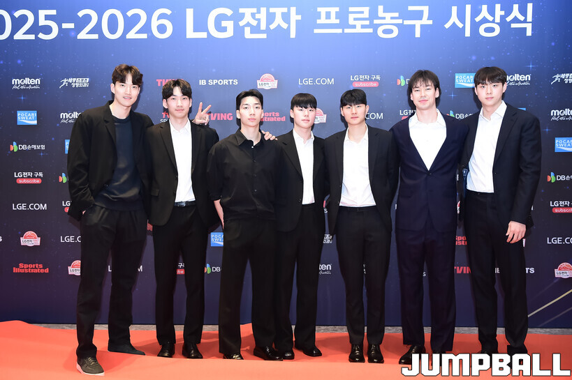 [점프볼=삼성/박상혁 기자] 9일 그랜드 인터컨티넨탈 서울 파르나스 그랜드 볼룸에서 열린 2025-2026 LG전자 프로농구 시상식, KBL 선수들의 사복 패션이 남달랐던 포토월 화보