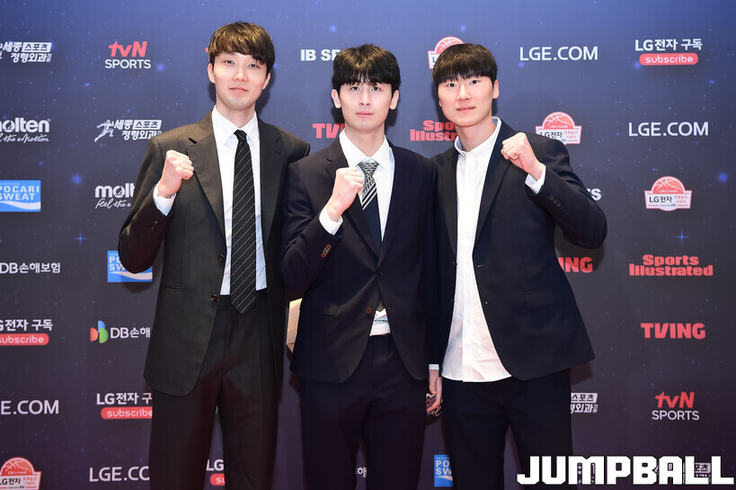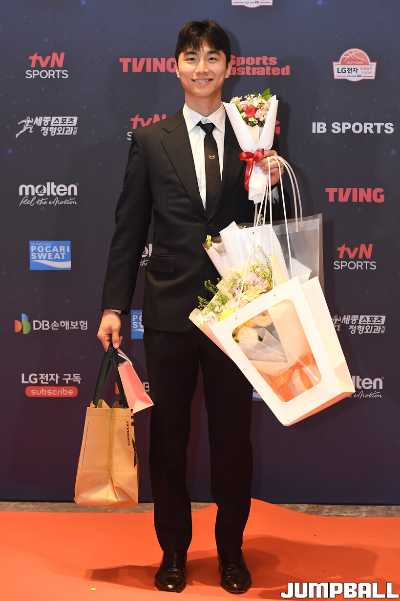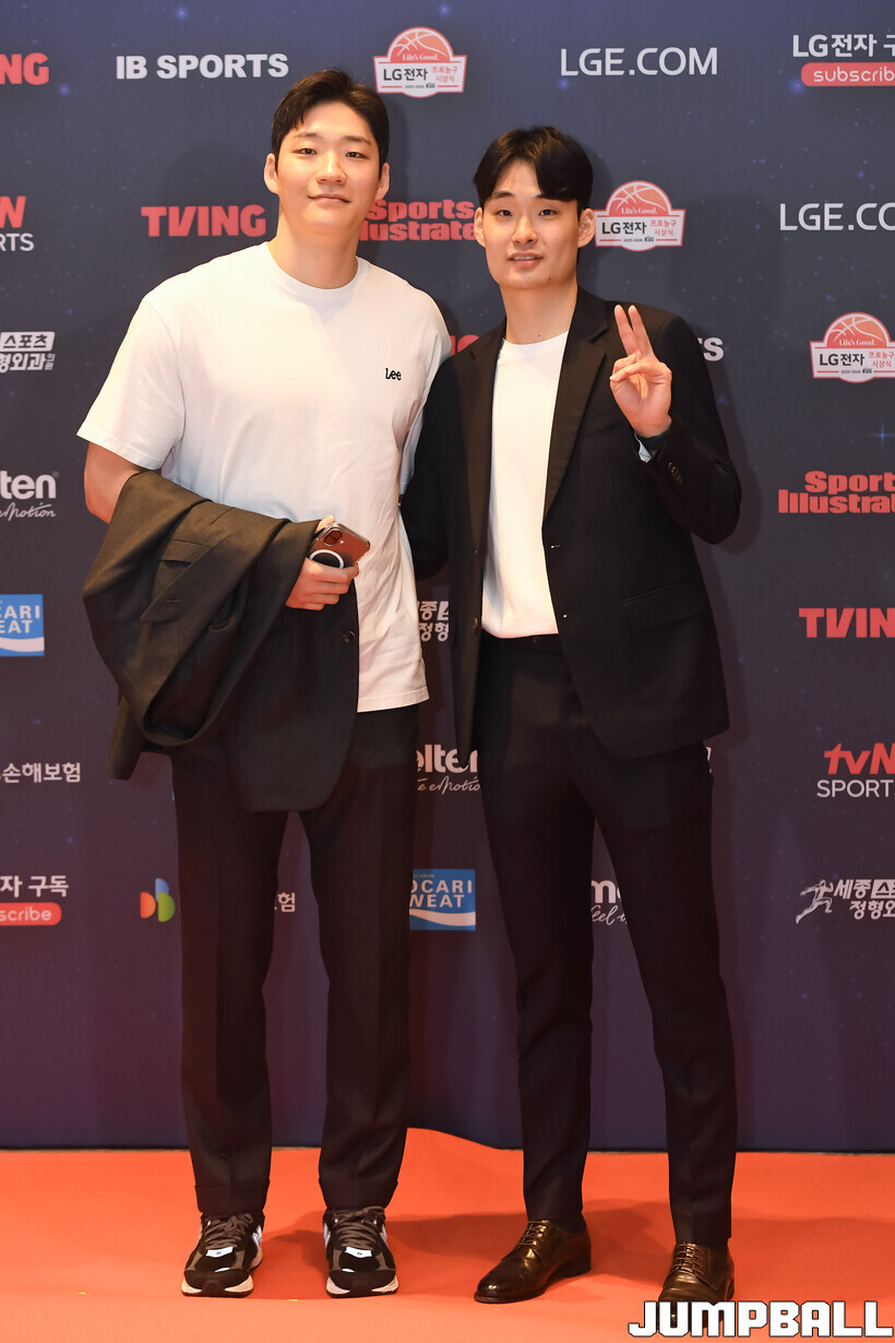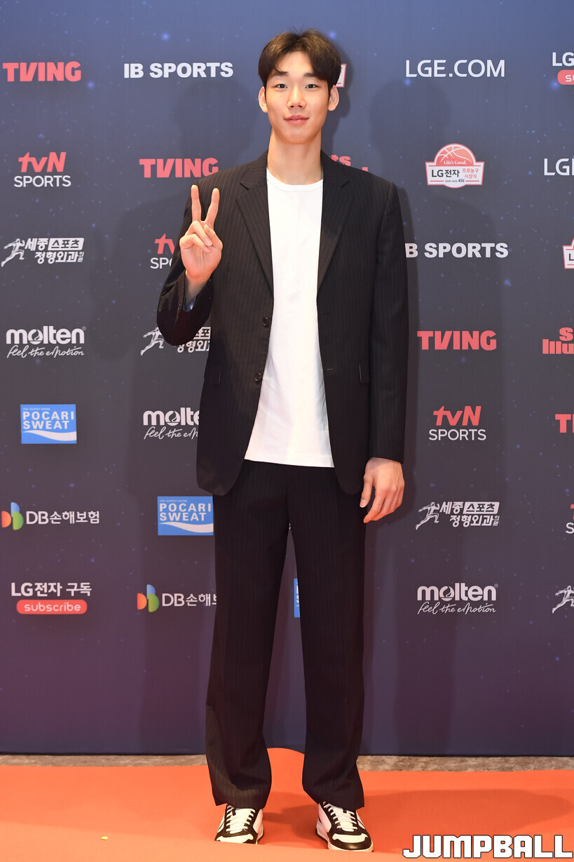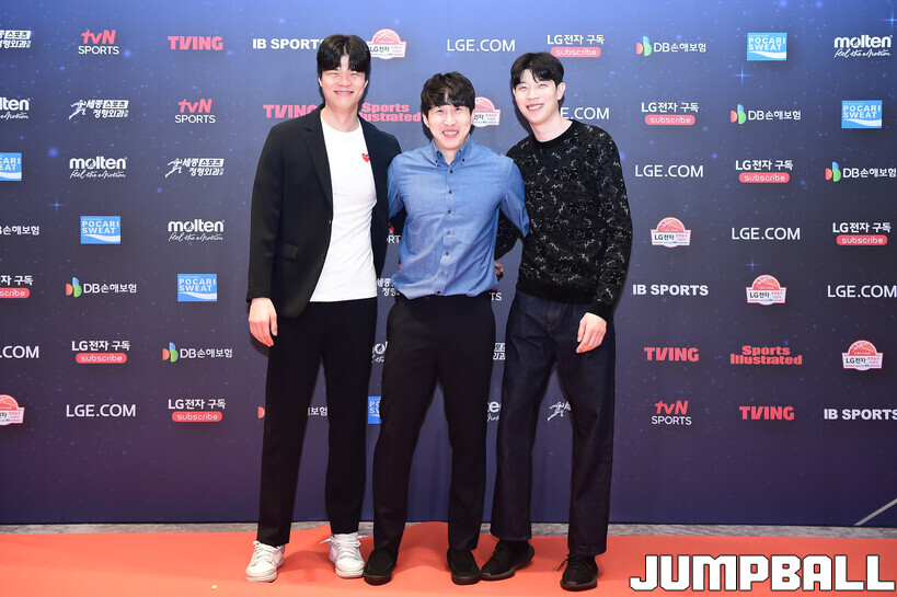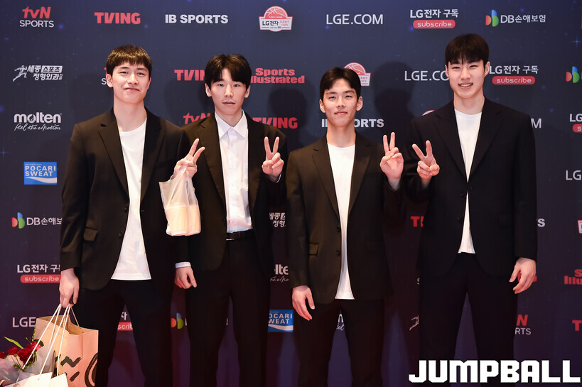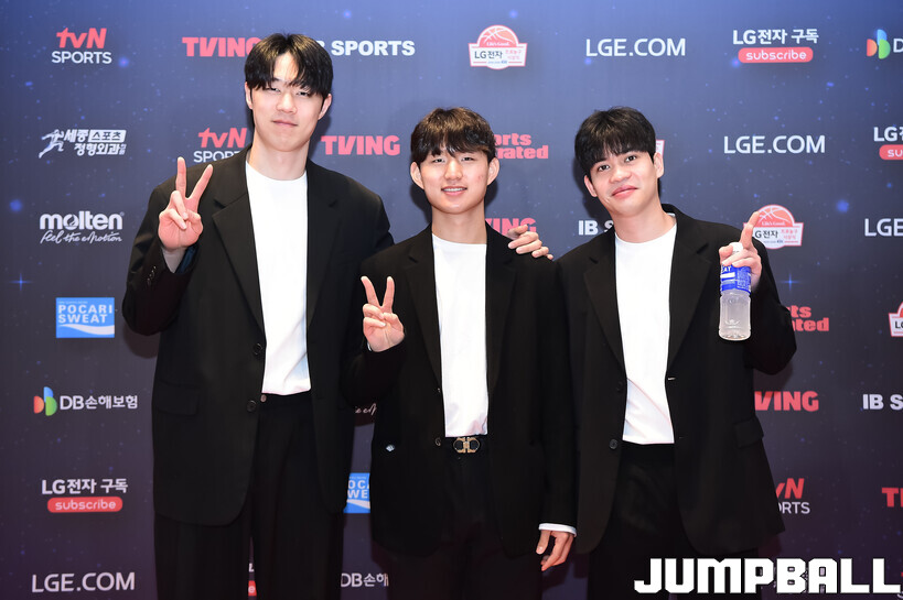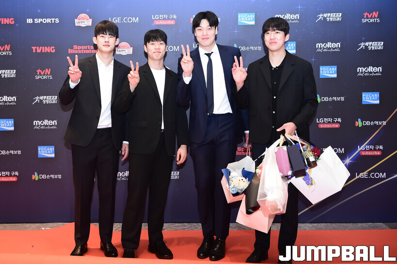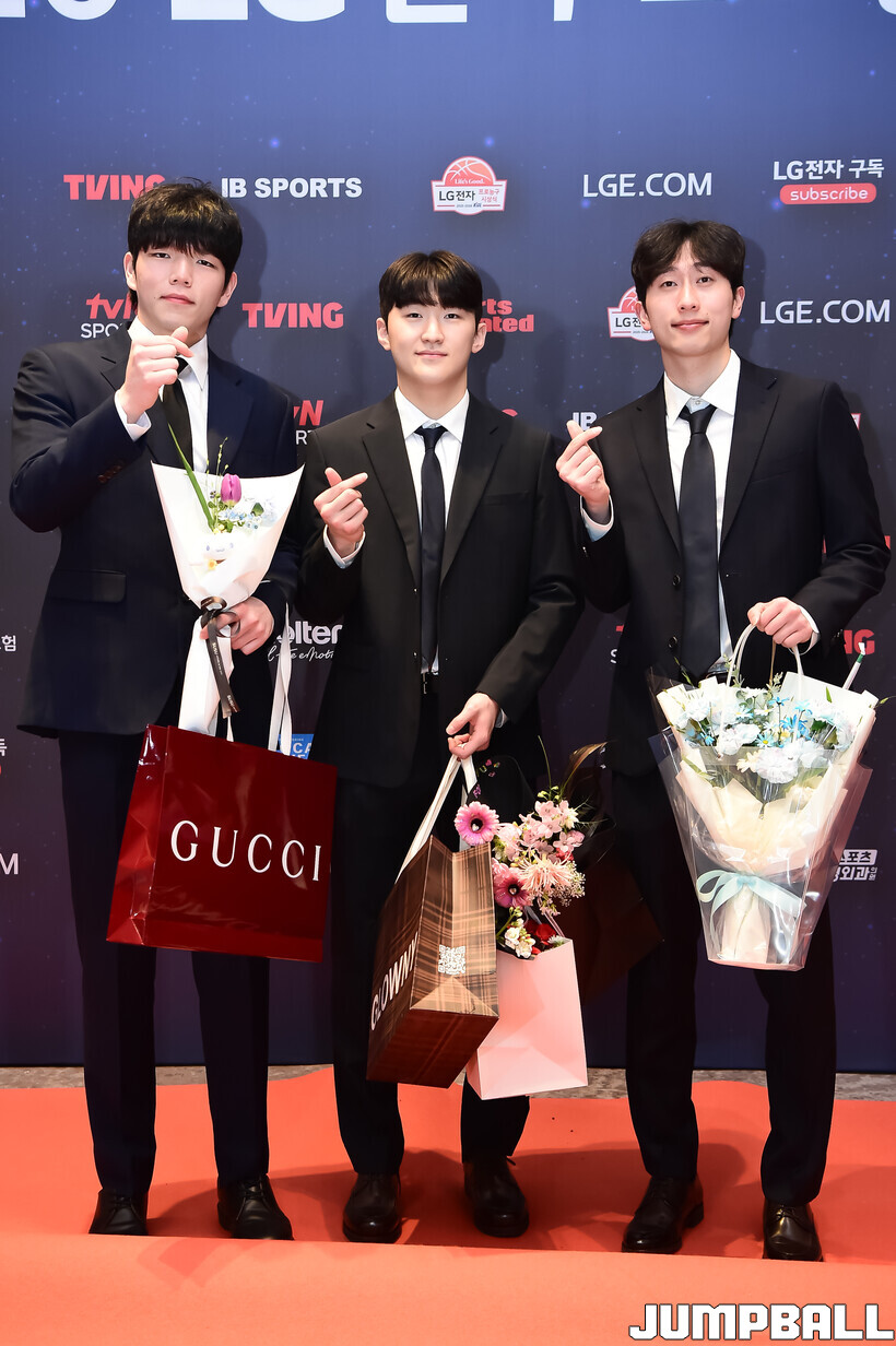 [점프볼=삼성/박상혁 기자] 9일 그랜드 인터컨티넨탈 서울 파르나스 그랜드 볼룸에서 열린 2025-2026 LG전자 프로농구 시상식, KBL 선수들의 사복 패션이 남달랐던 포토월 화보