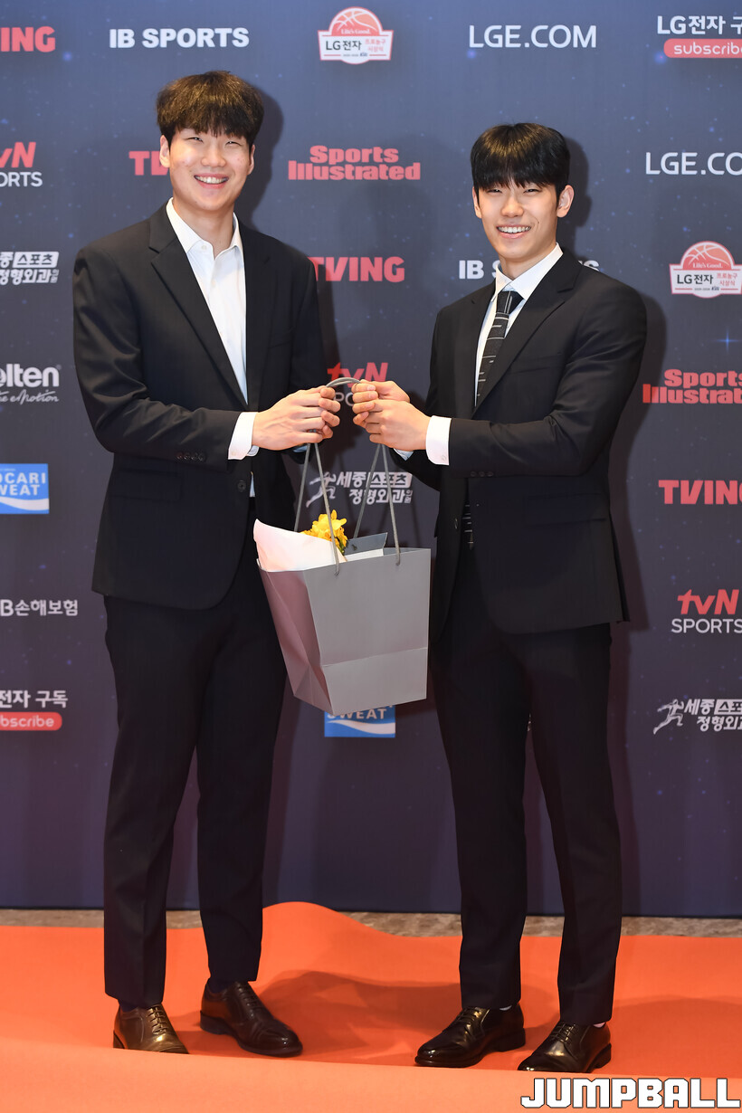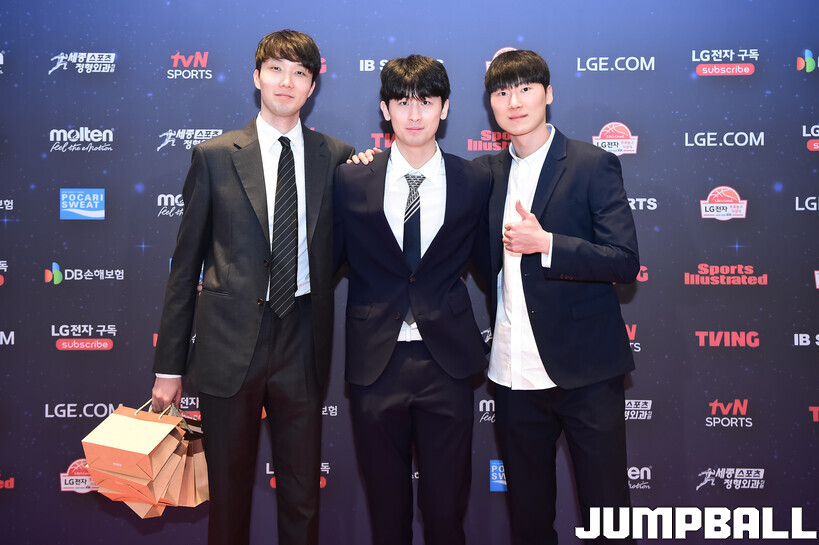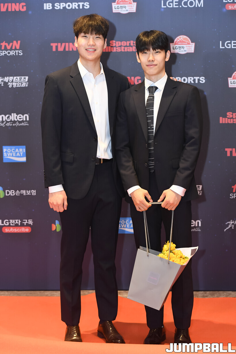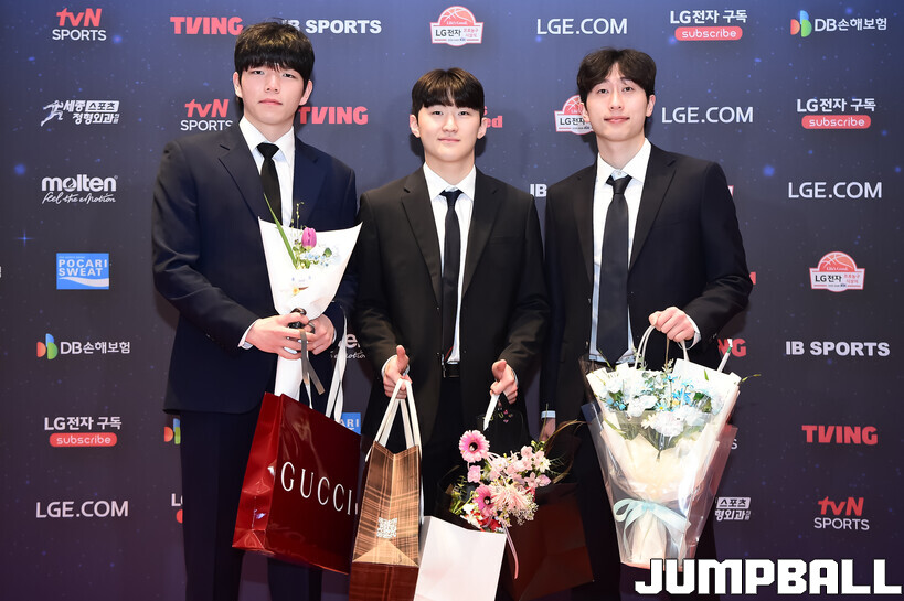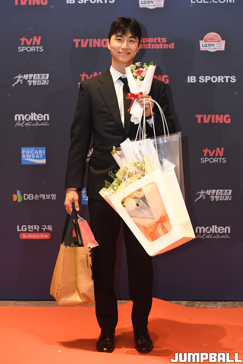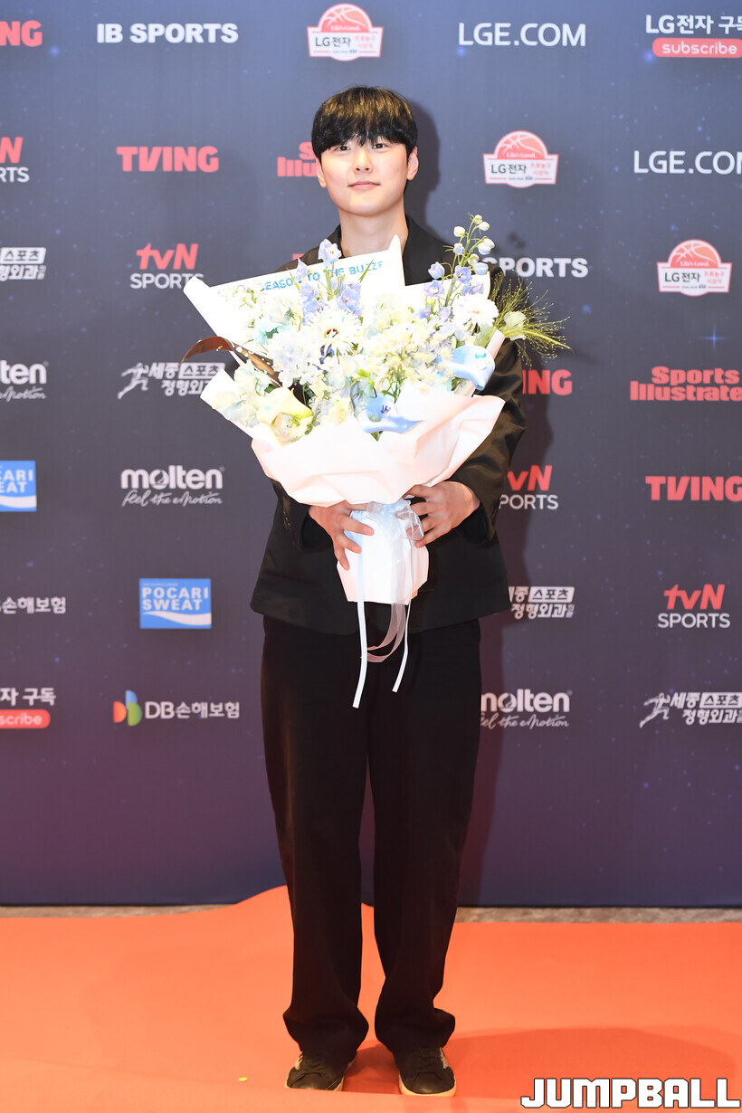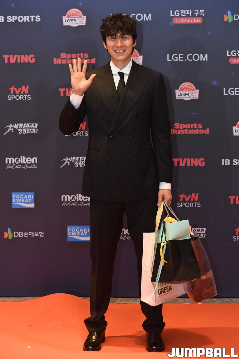 [점프볼=삼성/박상혁 기자] 9일 그랜드 인터컨티넨탈 서울 파르나스 그랜드 볼룸에서 열린 2025-2026 LG전자 프로농구 시상식, KBL 선수들의 사복 패션이 남달랐던 포토월 화보