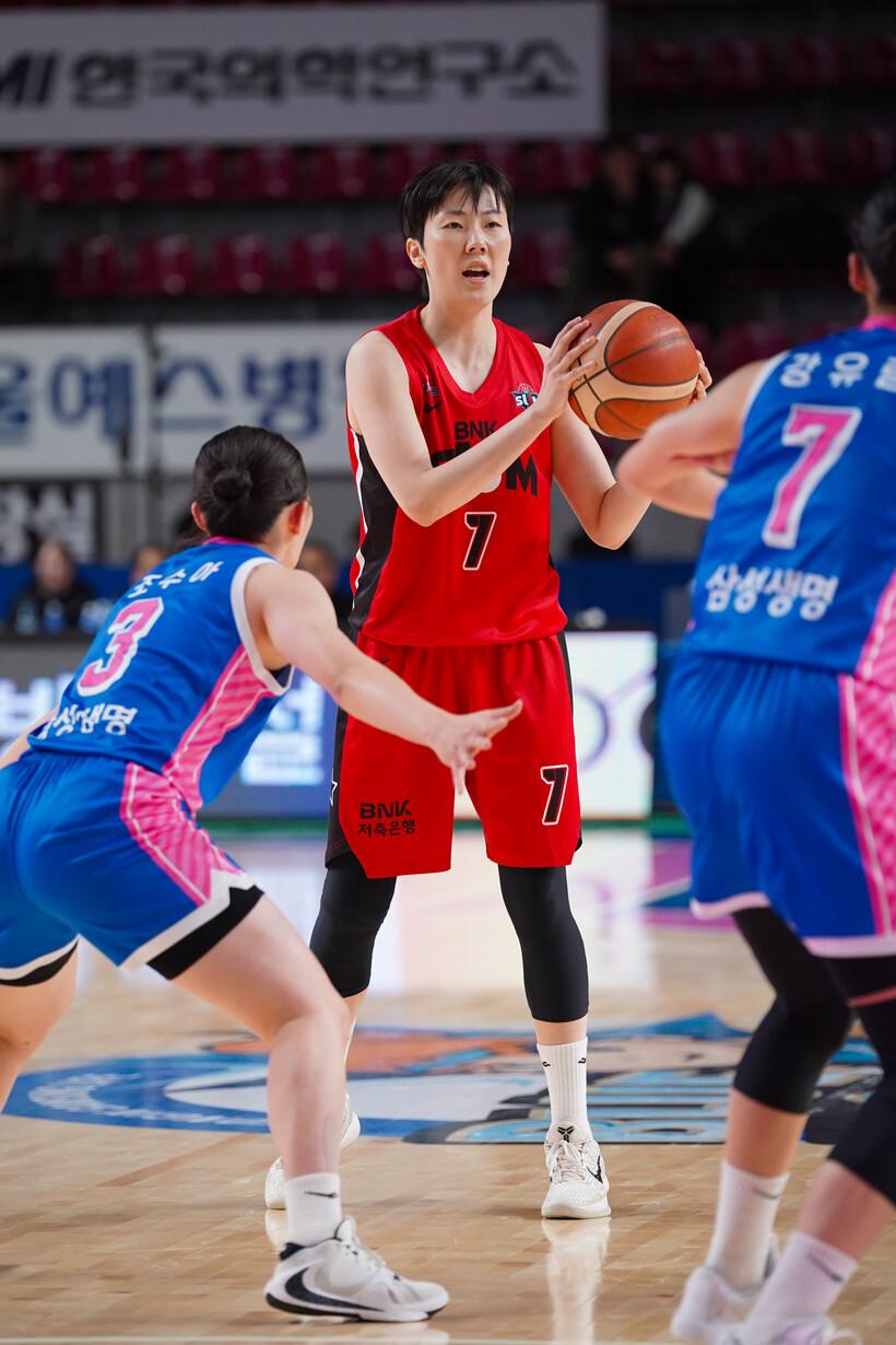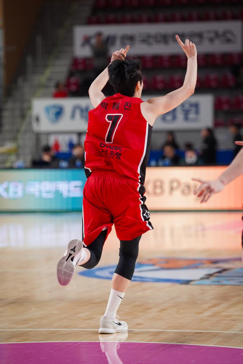 기록에 드러나지 않는 수비로 팀 승리에 힘을 보탠 박혜진. 묵묵히 자기 역할을 하며 베테랑의 품격을 완벽하게 보여줬다. BNK 역전승 발판에는 박혜진의 수비가 있었다.