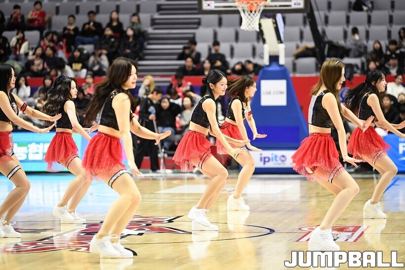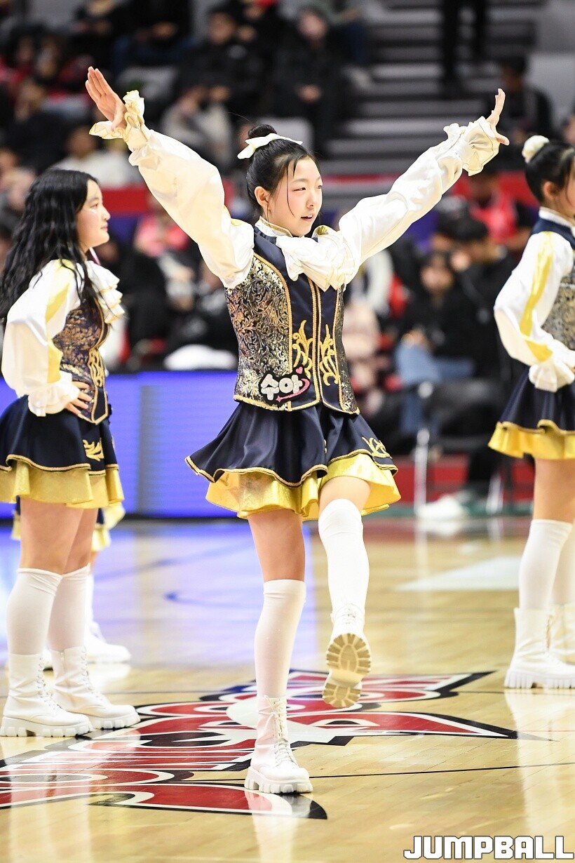 [점프볼=수원/유용우 기자] 21일 KT 소닉붐 아레나에서 열린 2025-2026 LG전자 프로농구 수원 KT과 안양 정관장의 경기, KT 치어리더들과 학생 응원단이 열광적인 응원을 펼치고 있다.