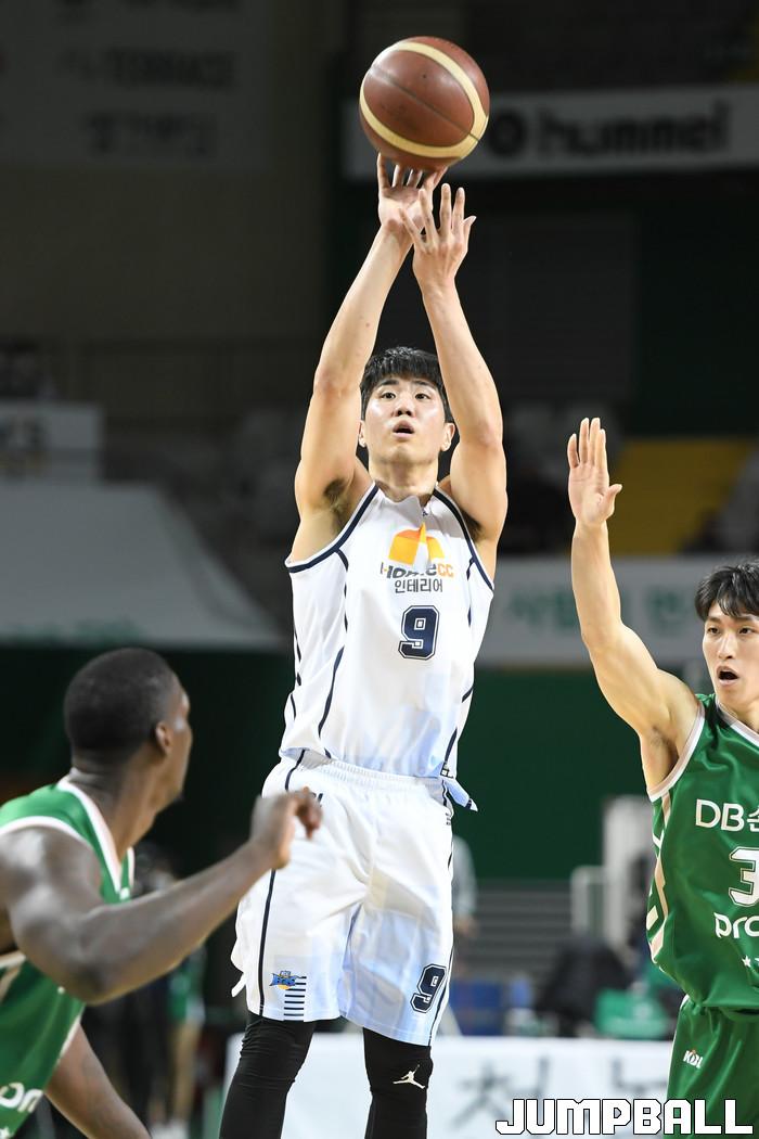 11일 원주종합체육관에서 열린 2021-2022 KGC인삼공사 정관장 프로농구 원주 DB와 전주 KCC의 경기, KCC 김지완이 3점슛을 시도하고 있다.