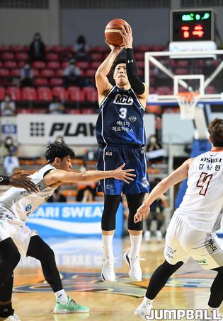 [점프볼=전주/문복주 기자] 21일 전주실내체육관에서 열린 2020-2021 현대모비스 프로농구 전주 KCC와 인천 전자랜드와의 4강 플레이오프 1차전, KCC 정창영이 골밑으로 돌파를 시도하고 있다.