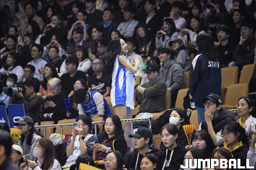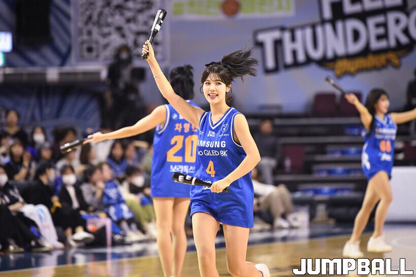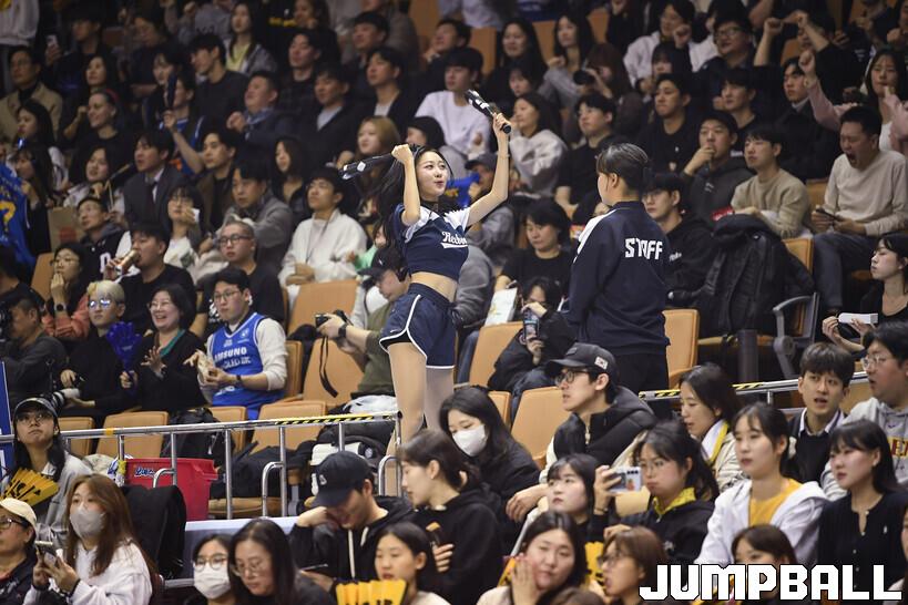 [점프볼=잠실/유용우 기자] 12일 잠실실내체육관에서 열린 2025-2026 LG전자 프로농구 서울 삼성과 창원 LG의 경기, 삼성 치어리더들이 열정정인 응원을 펼치며 팬들과 호흡하고 있다.