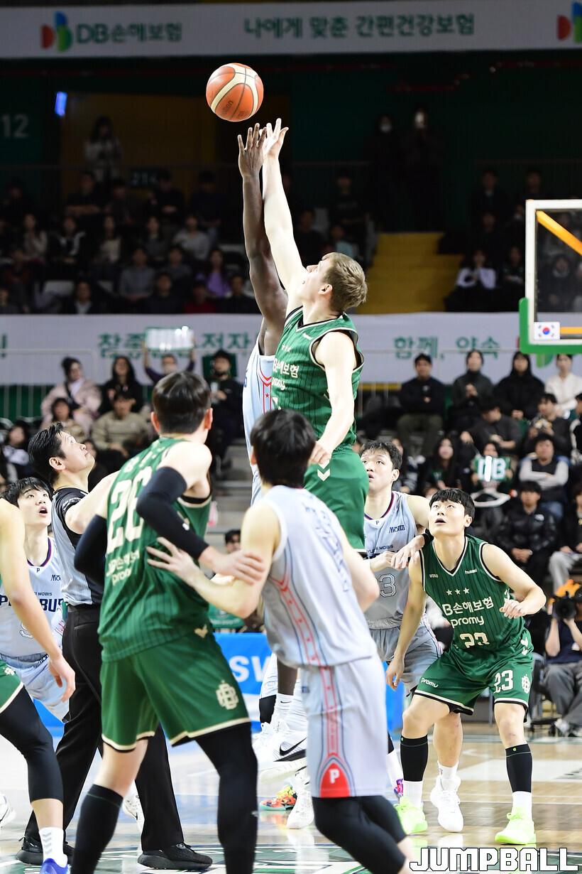 [점프볼=원주/박상혁 기자] 8일 원주 DB 프로미 아레나에서 열린 2025-2026 LG전자 프로농구 원주 DB와 울산 현대모비스의 경기, 점프볼로 경기가 시작되었다.
