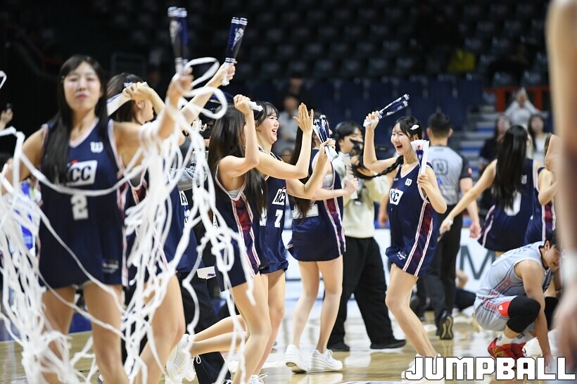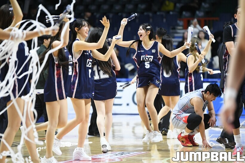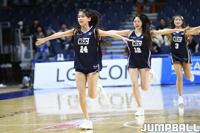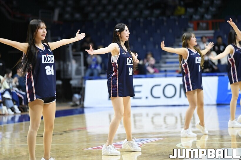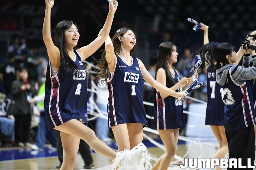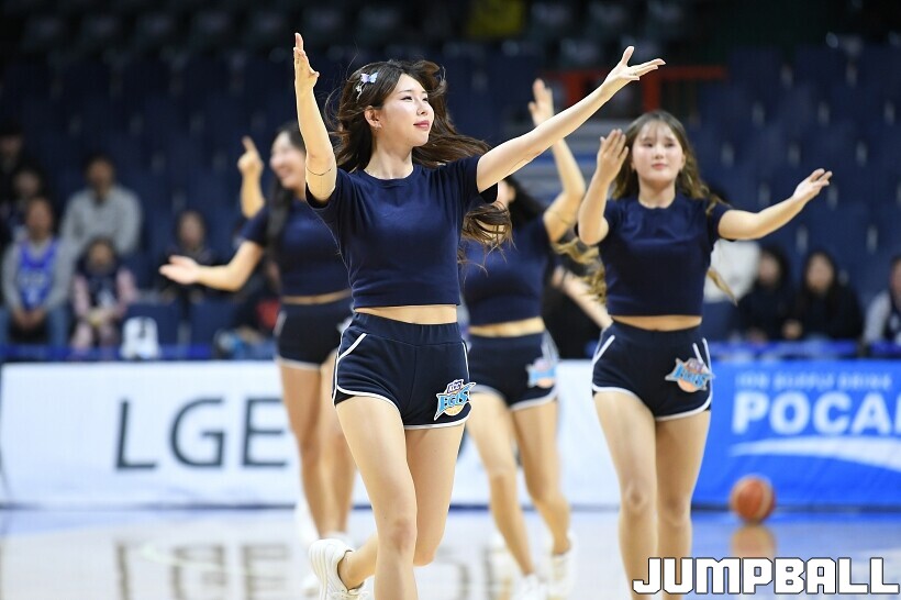 [점프볼=부산/유용우 기자] 19일 부산사직체육관에서 열린 2025-2026 LG전자 프로농구 부산 KCC와 울산 현대모비스의 경기, KCC 치어리더들이 응원전을 펼치며 부산 농구팬들의 환호를 이끌고 있다.