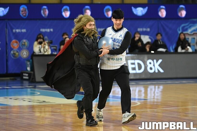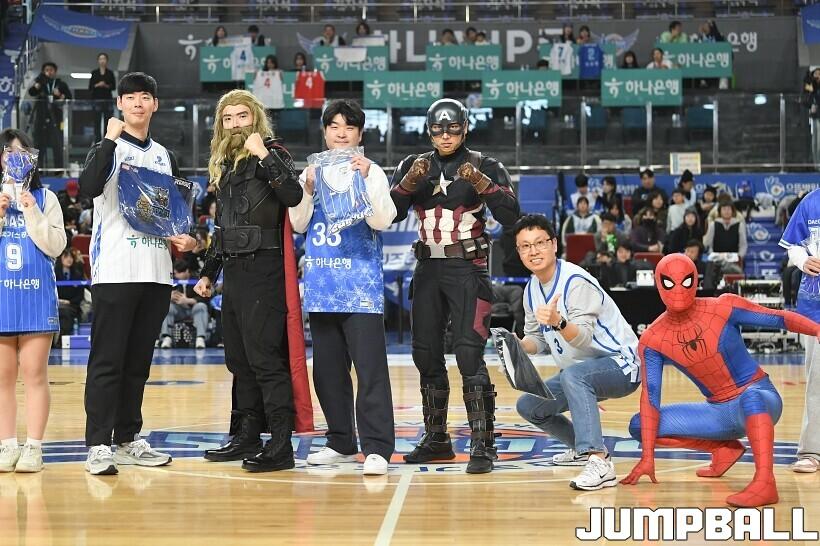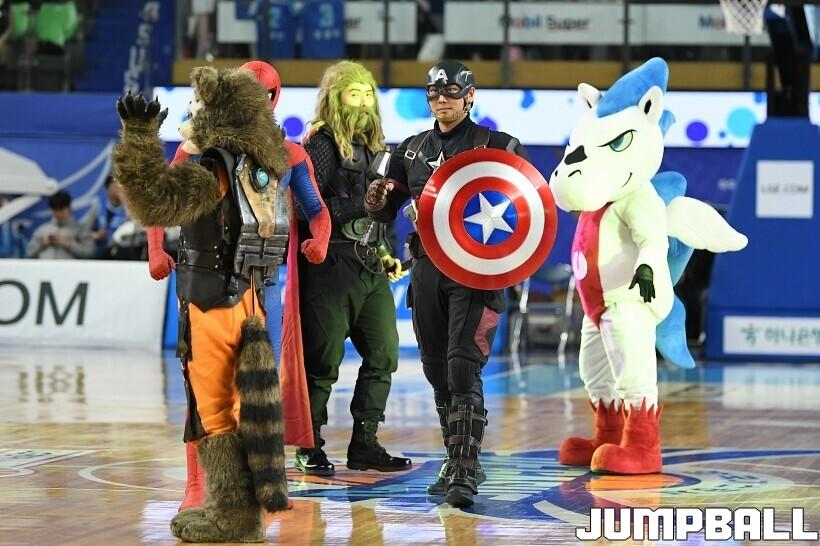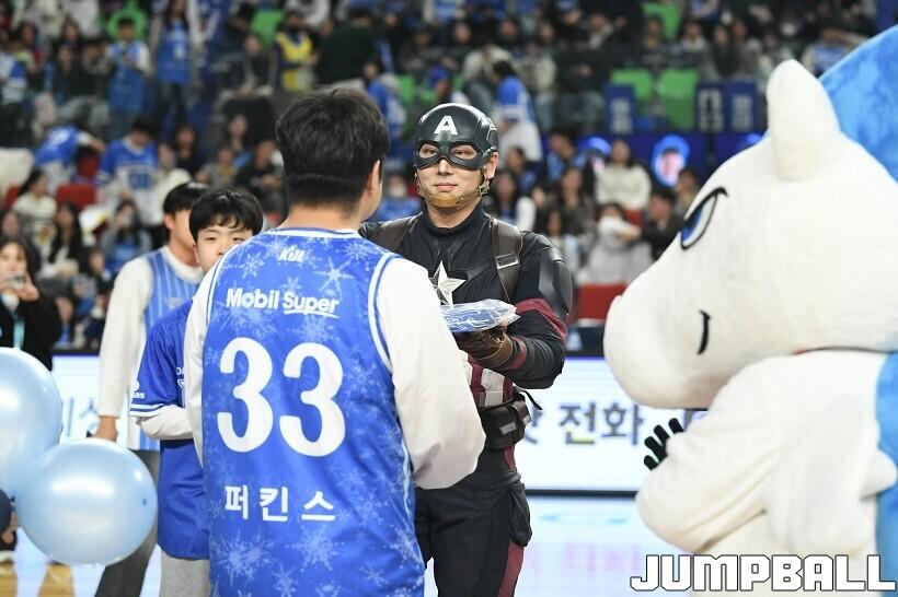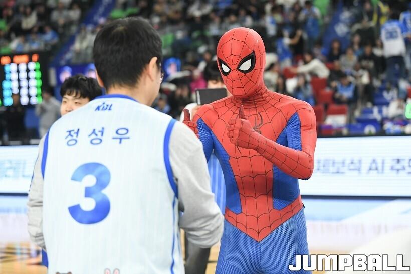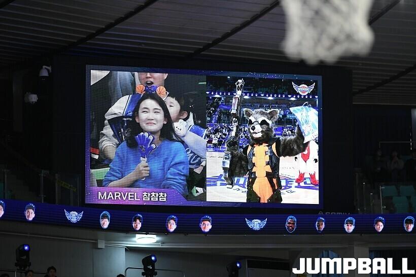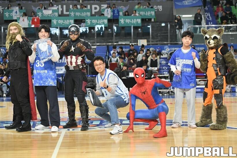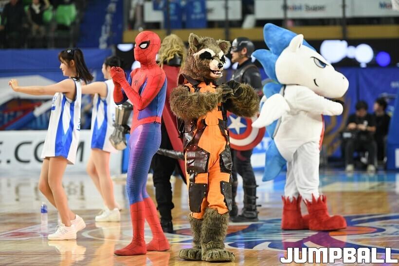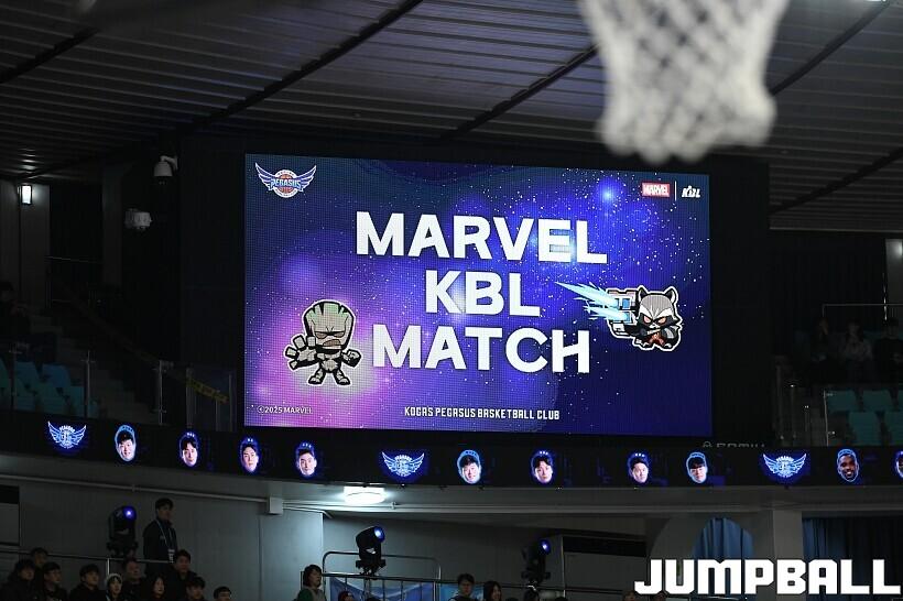 [점프볼=대구/유용우 기자] 27일 대구실내체육관에서 열린 2025-2026 LG전자 프로농구 대구 한국가스공사와 서울 SK의 경기, 당일 경기는 월트디즈니 컴퍼니 코리아와 협업하여 마블 테마의 경기 이벤트 ‘마블 매치(MARVEL MATCH)’로 개최됐다. 현장에는 마블 캐릭터 코스튬을 입은 마블 히어로들이 팬들이 함께하는 포토존, ‘응원타임’, ‘하프타임 코트 이벤트’ 등 다양한 참여형 프로그램이 진행됐다.