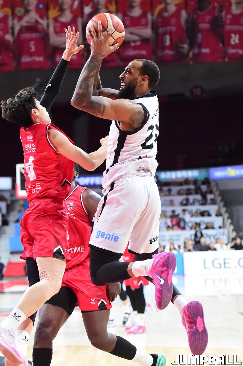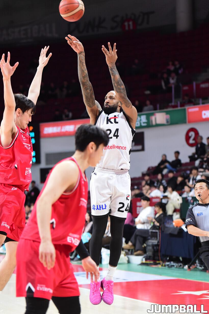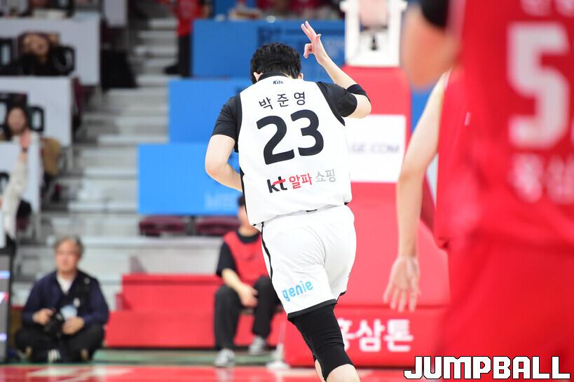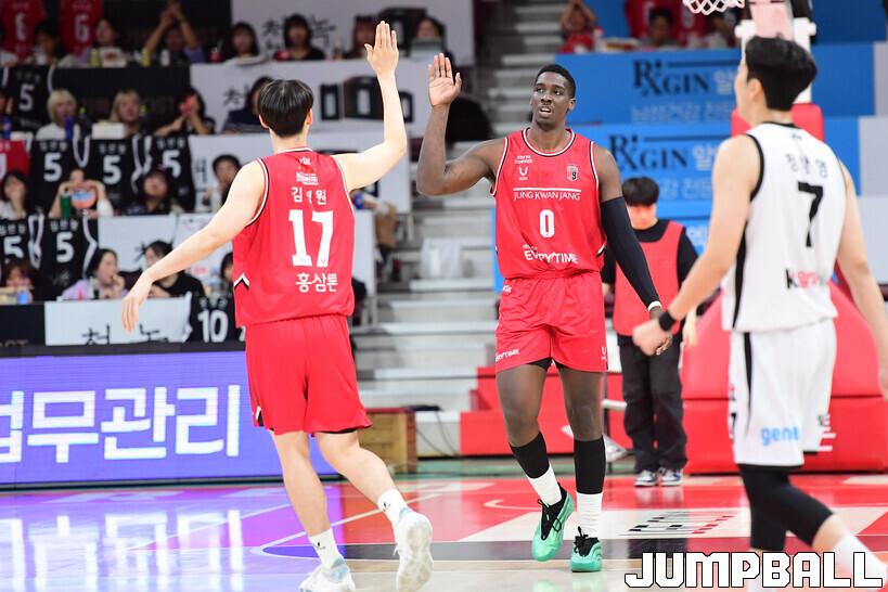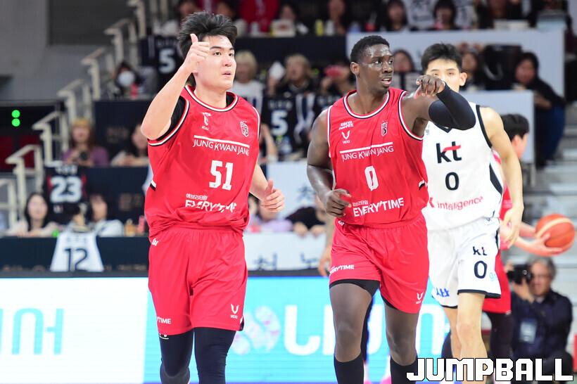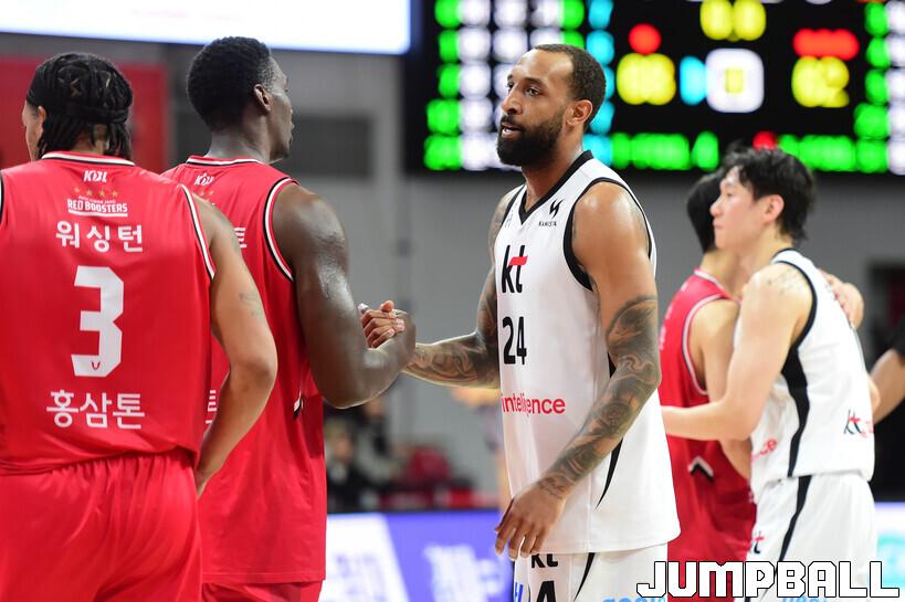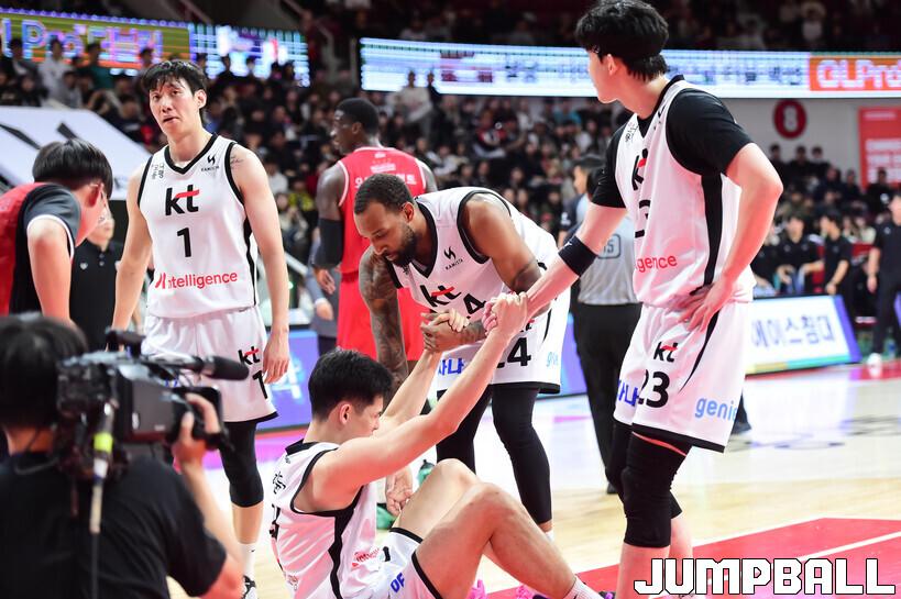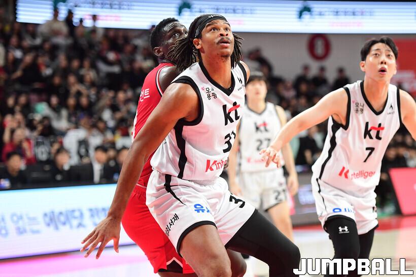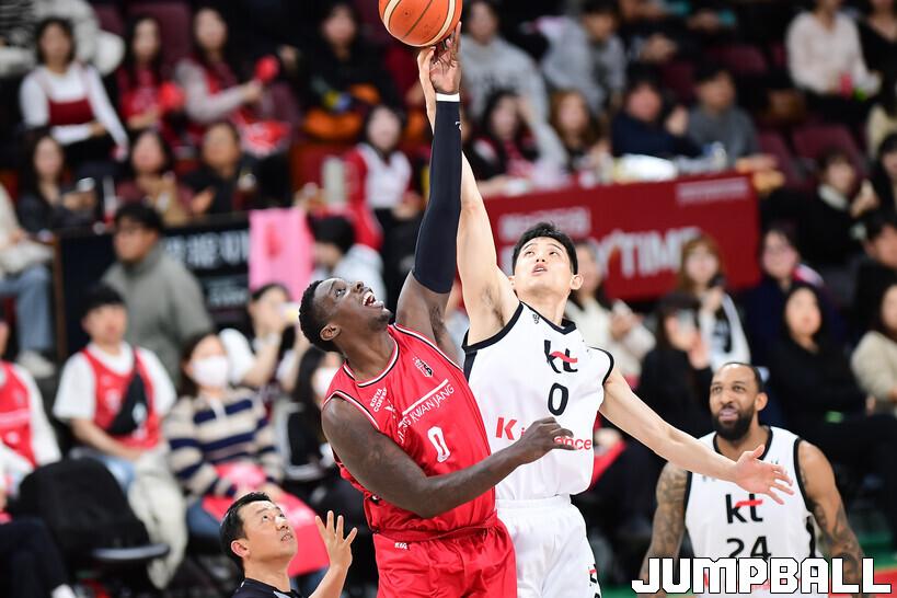[점프볼=안양/박상혁 기자] 19일 안양 정관장 아레나에서 열린 2025-2026 LG전자 프로농구 안양 정관장과 수원 KT의 경기, KT가 정관장에 68-62로 승리했다.