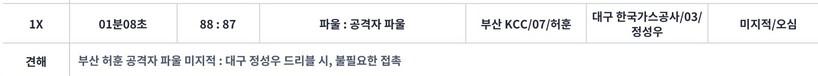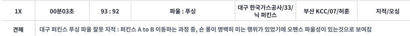 가스공사는 공격자 반칙이 불리지 않아서 3점을 뺏기고, 공격자 반칙이 오히려 수비자 반칙으로 바뀌어 결승 자유투를 내줬다.