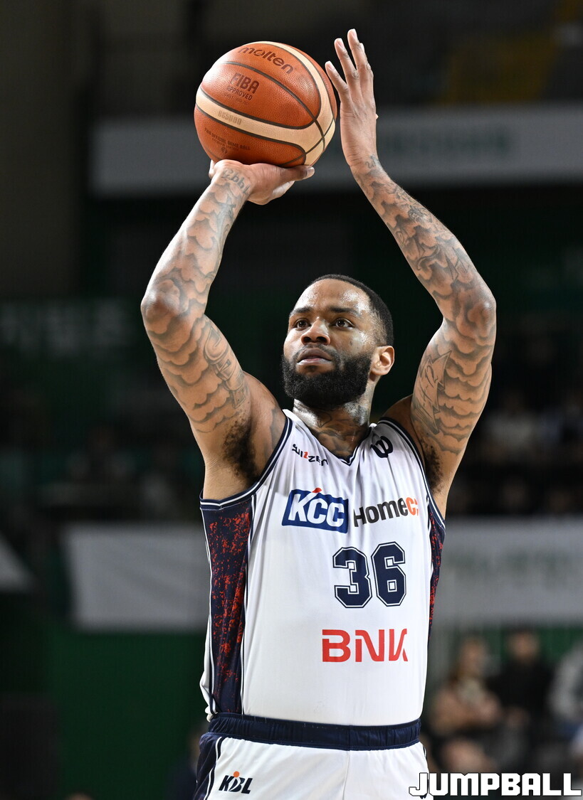 부산 KCC 롱은 5일 원주DB프로미아레나에서 열린 2025-2026 LG전자 프로농구 정규시즌 원주 DB와의 경기에서 37점 10리바운드로 맹활약, KCC의 대승(104-84)에 크게 일조했다. KCC(5위/22승 21패)는 승리로 A매치 브레이크 이후의 잔여 일정을 기분 좋게 시작했다.