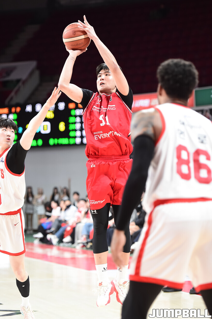 [점프볼=안양/박상혁 기자] 8일 안양 정관장 아레나에서 열린 2025-2026 LG전자 프로농구 안양 정관장과 서울 SK의 경기, 정관장 한승희가 슛을 시도하고 있다.