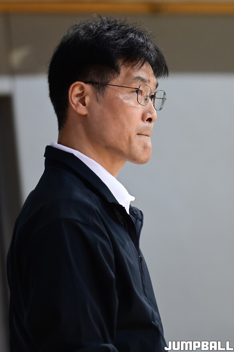 [점프볼=신촌/박상혁 기자] 27일 연세대학교 신촌캠퍼스 체육관에서 열린 2026 KUSF 대학농구 U-리그 연세대와 고려대의 경기, 연세대 조동현 감독이 선수들의 플레이를 지켜보고 있다.