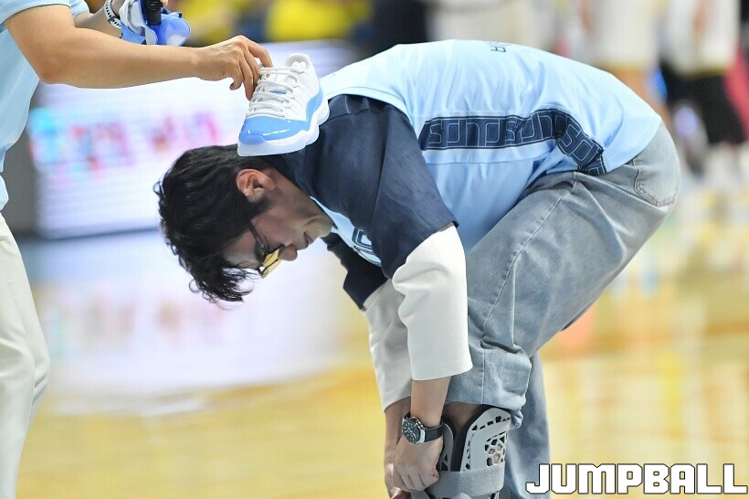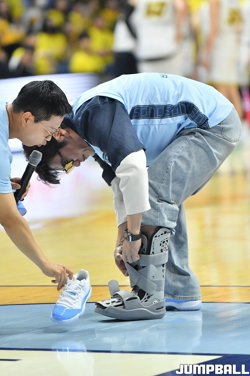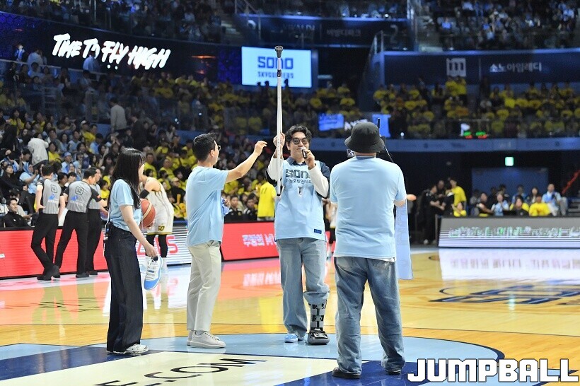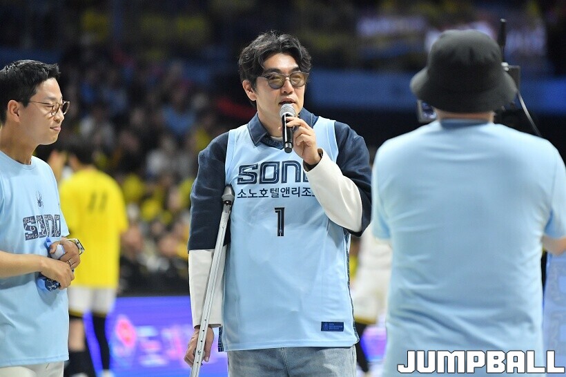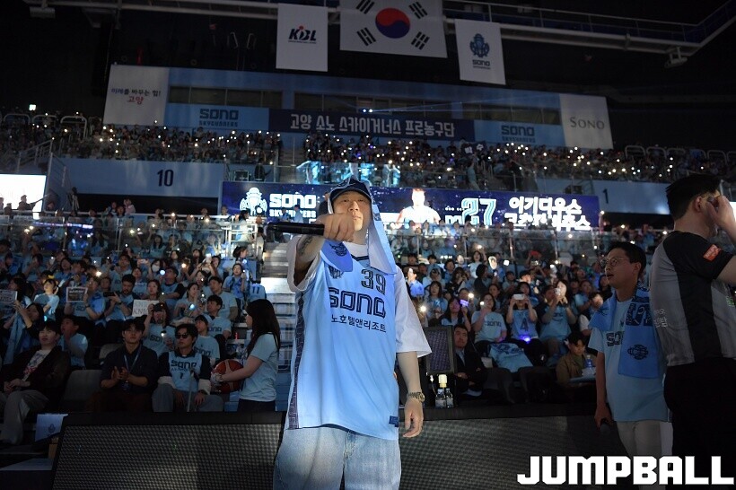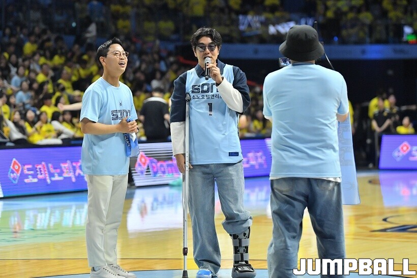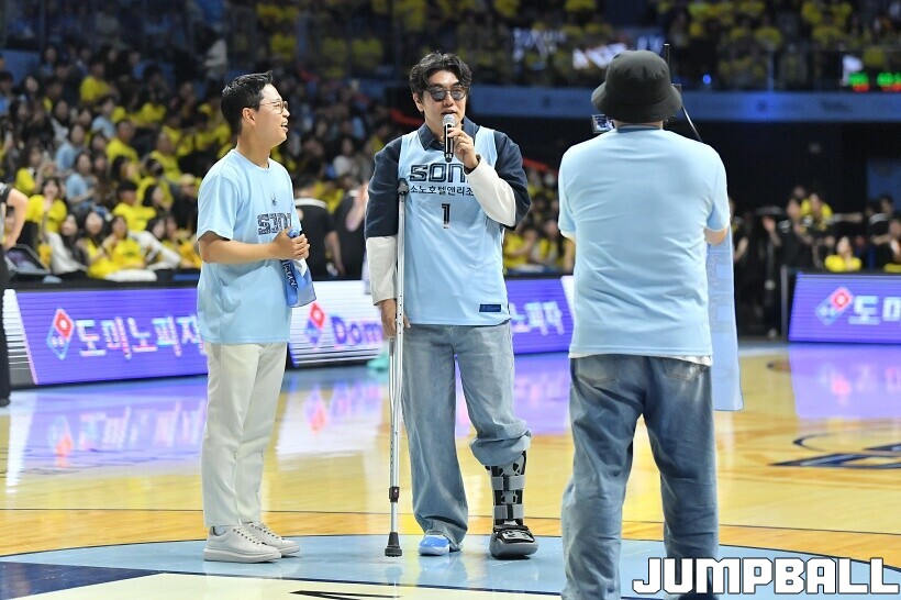 [점프볼=고양/유용우 기자] 29일 고양 소노 아레나에서 열린 2025~2026 LG전자 프로농구 4강 플레이오프 3차전 고양 소노와 창원 LG의 경기, 배우 이종혁이 소노의 챔프전 진출을 기원하는 시투를 진행했다. 래퍼 딥플로우는 소노 선수들의 코트입장에 무대를 펼치며 승리를 기원했다.