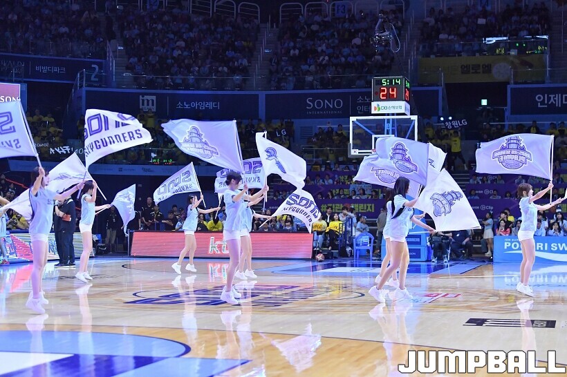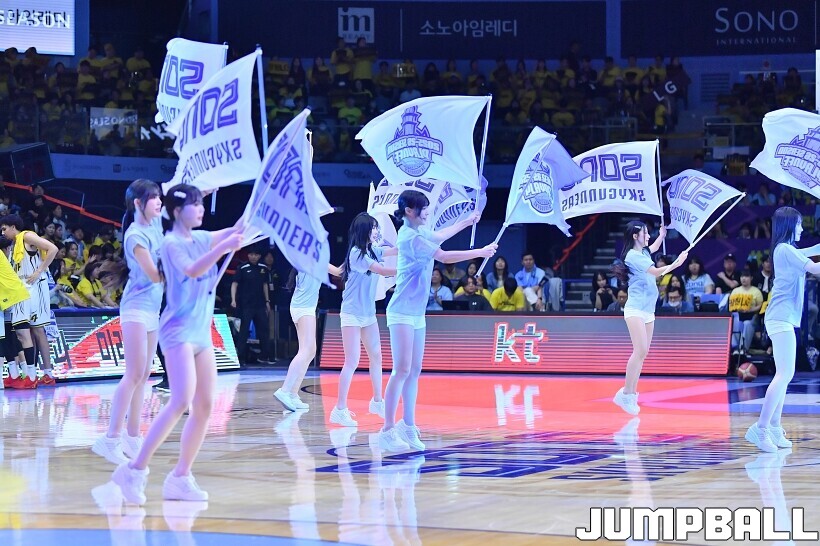 [점프볼=고양/유용우 기자] 29일 고양 소노 아레나에서 열린 2025~2026 LG전자 프로농구 4강 플레이오프 3차전 고양 소노와 창원 LG의 경기, 소노 치어리더들이 챔프전 진출을 기원하며 홈팬들을 이끌며 응원전을 펼치고 있다.