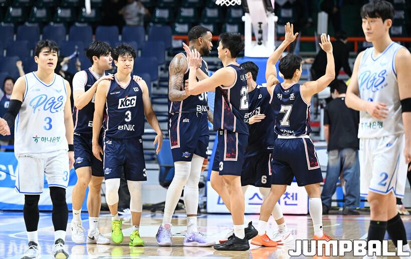 [점프볼=부산/문복주 기자] 부산 KCC는 18일 부산사직체육관에서 열린 2025~2026 LG전자 프로농구 대구 한국가스공사와 홈 경기에서 88-84으로 이겼다.KCC의 나바로는 개인 최다인 18점10리바운드와 3블록과 숀롱은 28점 10리바운드 5어시스트 2블록하고 허웅은 3점슛 5개 포함 23점 3리바운드 3어시스트를 기록했다.