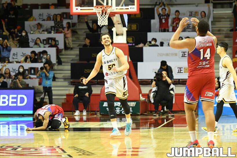 16일 안양체육관에서 열린 2022-2023 SKT 에이닷 프로농구 안양 KGC인삼공사와 창원 LG의 경기, LG가 KGC에 76-75로 승리했다.