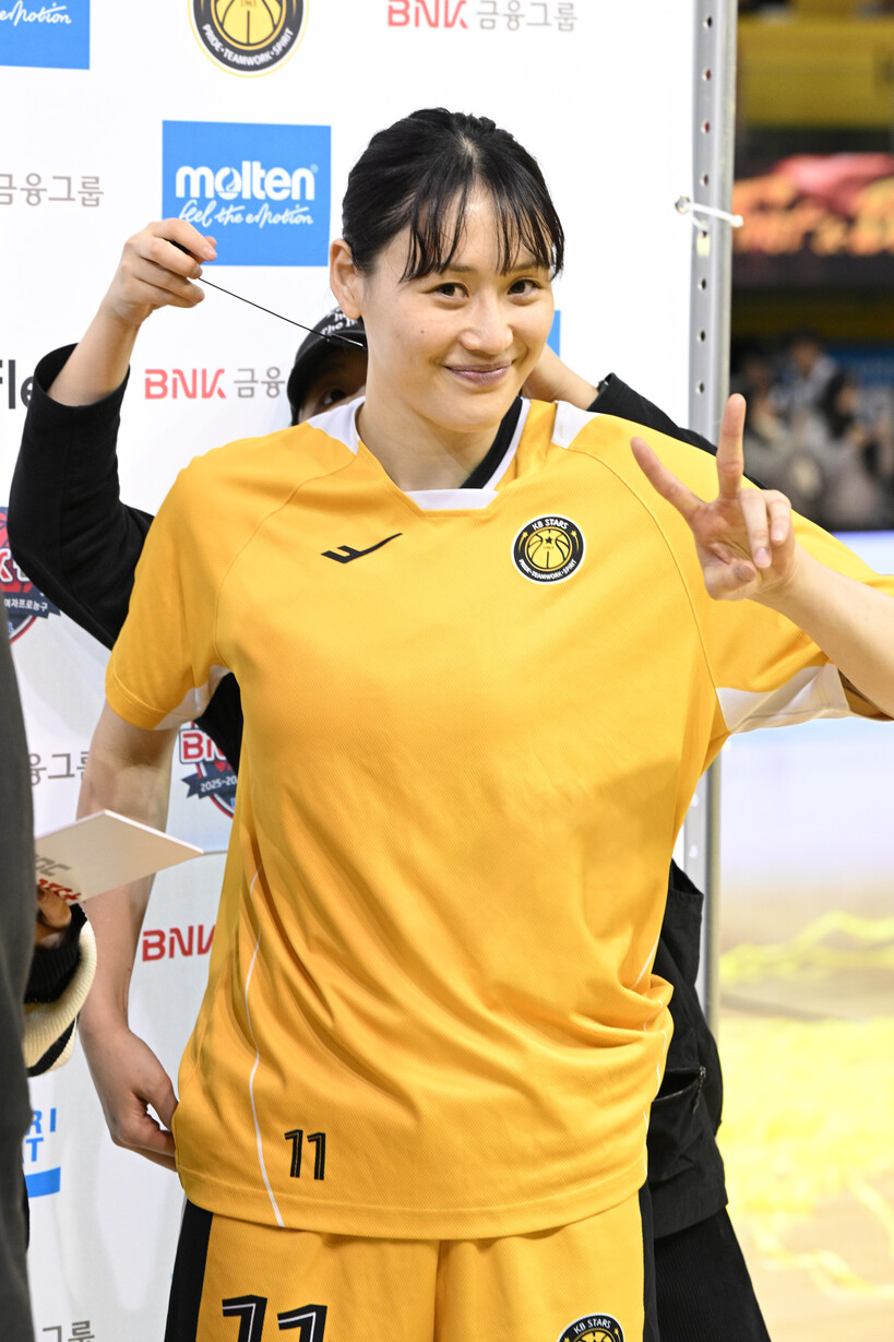 청주 KB스타즈 강이슬은 23일 청주 KB스타즈 챔피언스 파크에서 열린 BNK금융 2025~2026 여자프로농구 부산 BNK 썸과의 경기에서 31점 7리바운드 3어시스트를 기록, KB스타즈의 대승(85-58)에 큰 힘을 보탰다. KB스타즈는 강이슬의 활약으로 2위(10승 7패)를 지켰다.
