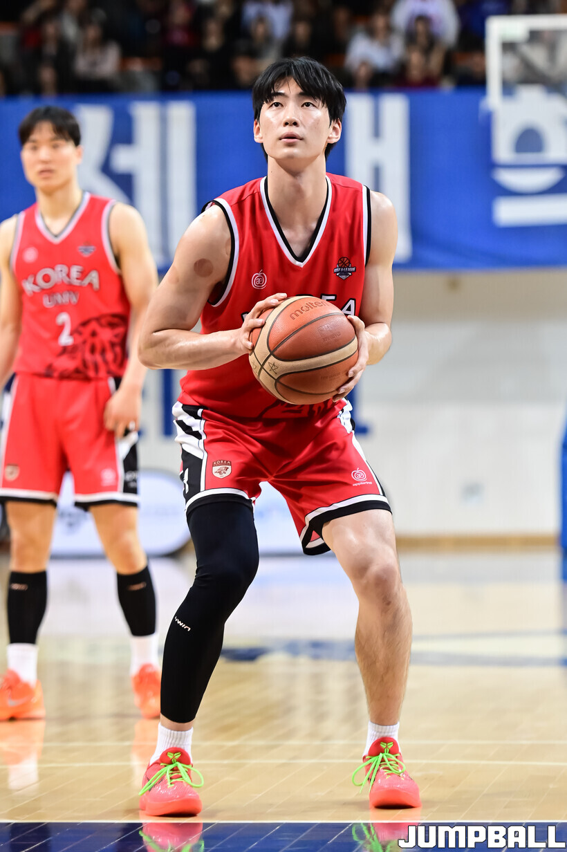 [점프볼=신촌/박상혁 기자] 27일 연세대학교 신촌캠퍼스 체육관에서 열린 2026 KUSF 대학농구 U-리그 연세대와 고려대의 경기, 고려대 유민수가 자유투를 시도하고 있다.